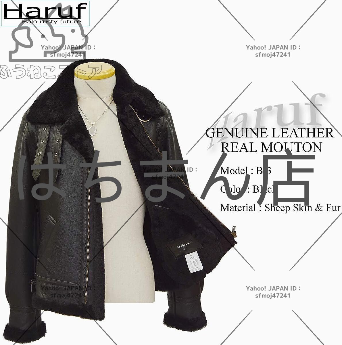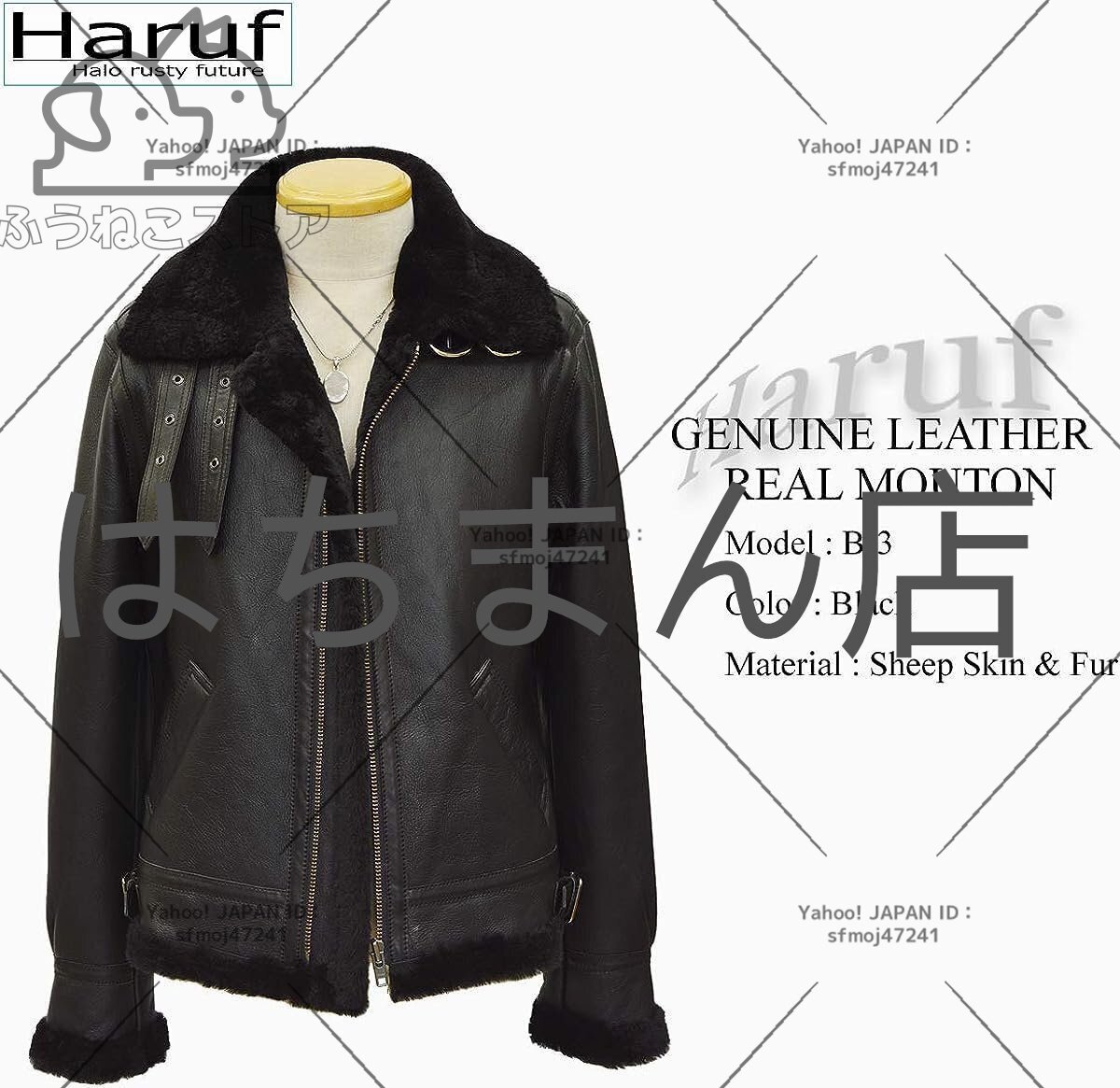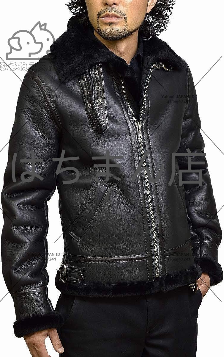 ムートンジャケット レザージャケット 本革 フライトジャケット メンズ ムートンコート ライダースジャケット 革ジャン B-3 ブラック M-3XL