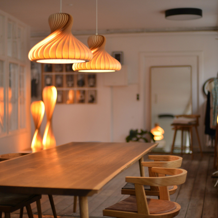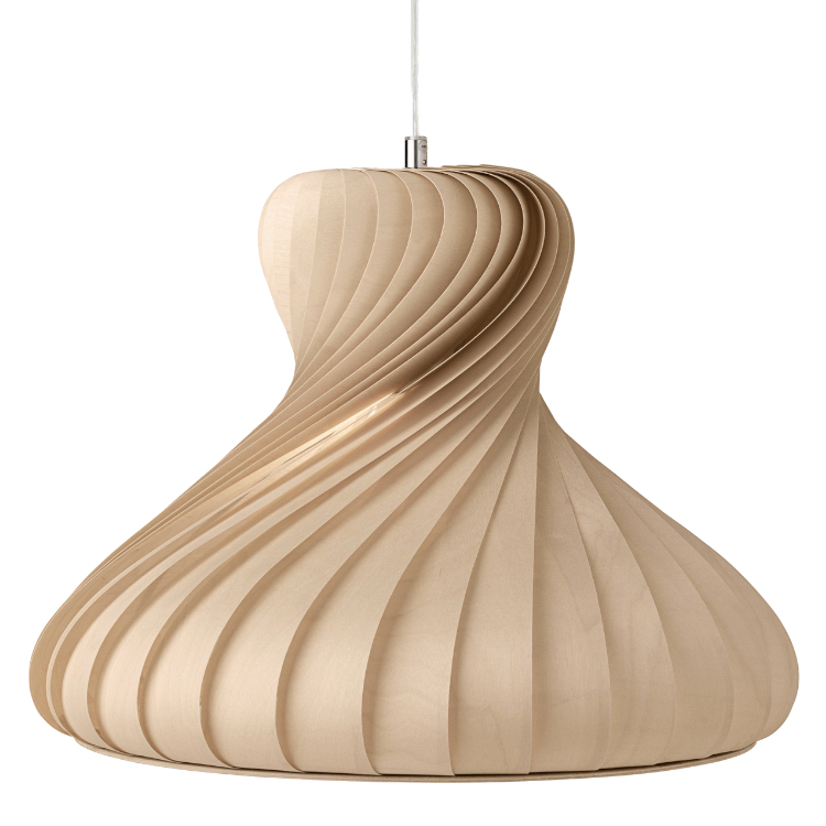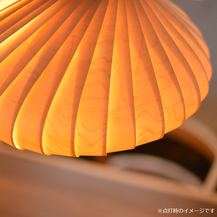 バーチ材のシートが重なることで織りなす光と影。温かみのある光を放ち、陰影によって深みのある表情を醸し出します。