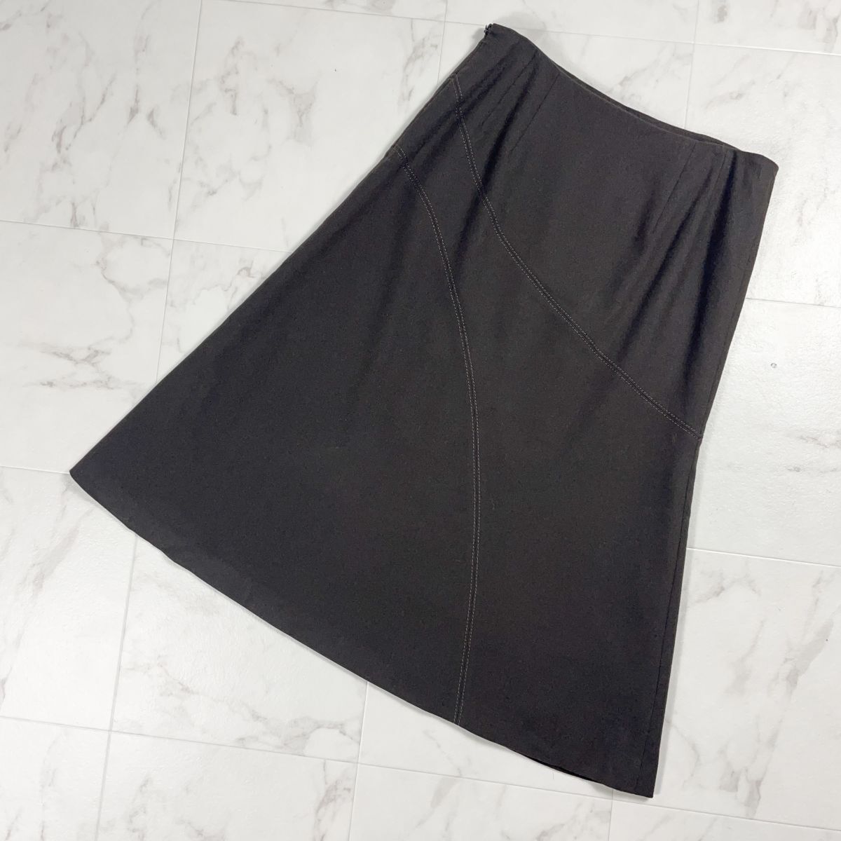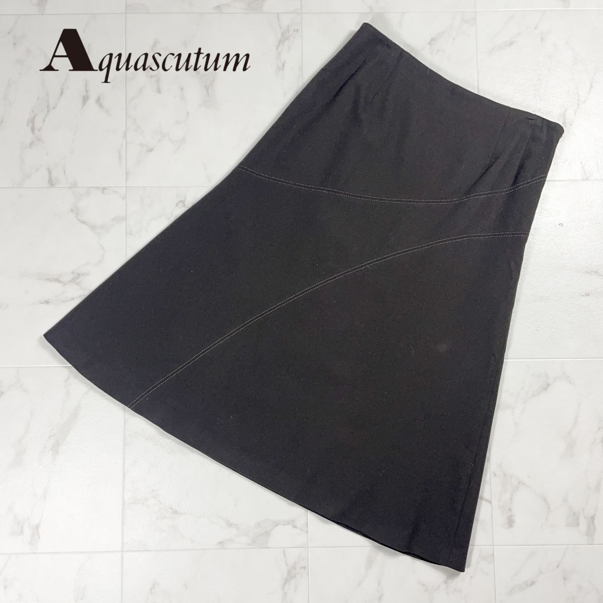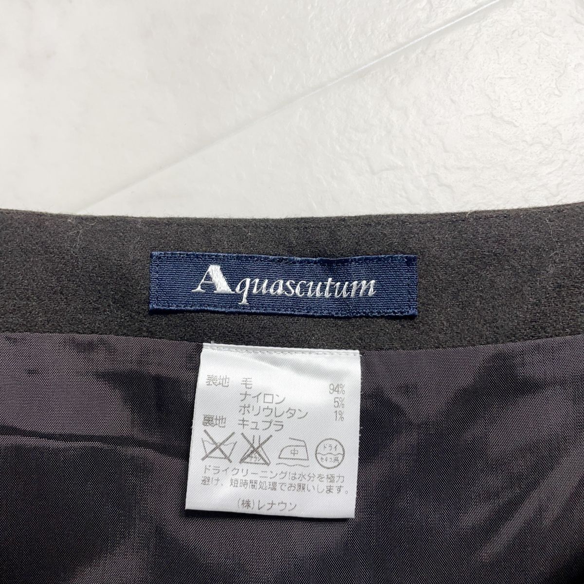 美品 Aquascutum アクアスキュータム ウール混 Aラインスカート ロング丈 ブラウン 茶 大きいサイズ サイズ13*ZC740