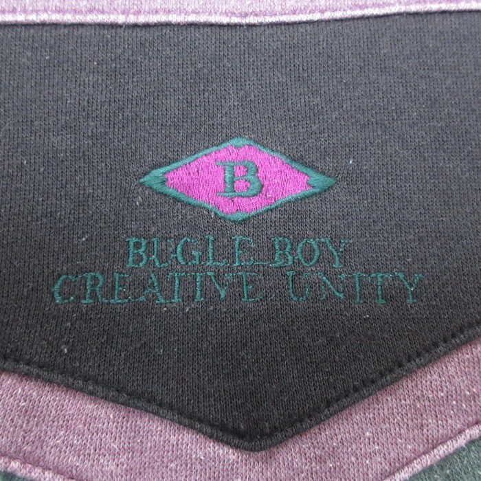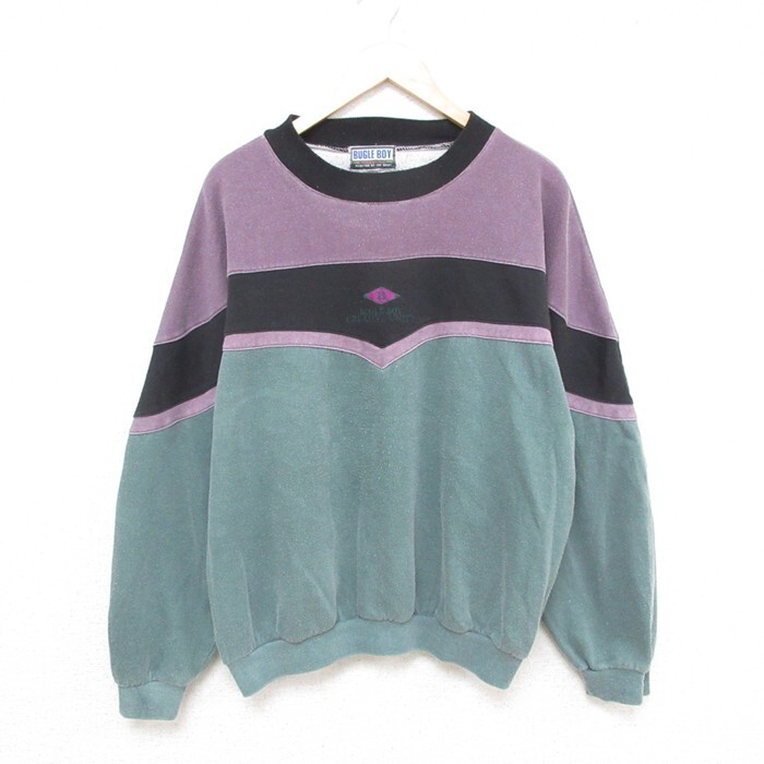 【商品名】 XL★古着 ビューグルボーイ 長袖 スウェット メンズ 90年代 90s ワンポイントロゴ マルチカラー ラグラン クルーネック 緑他