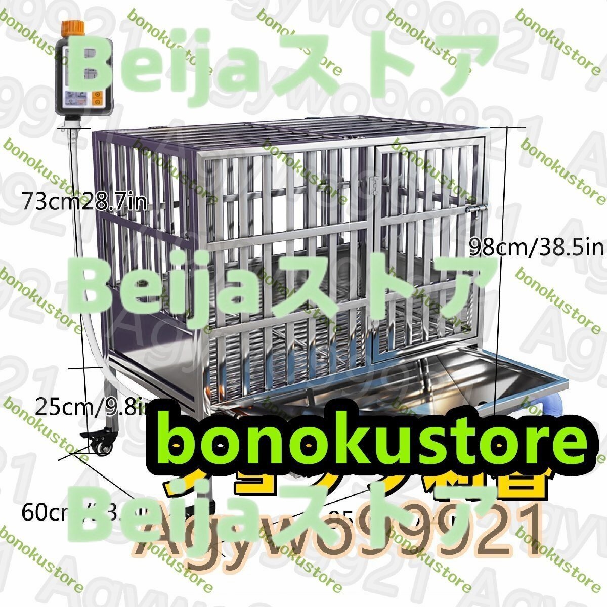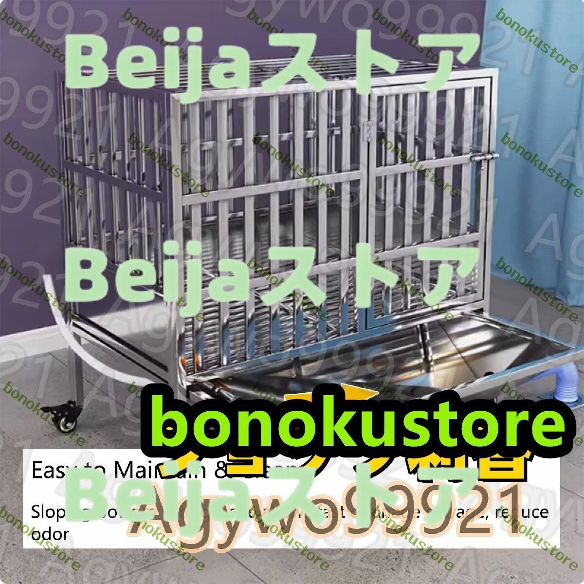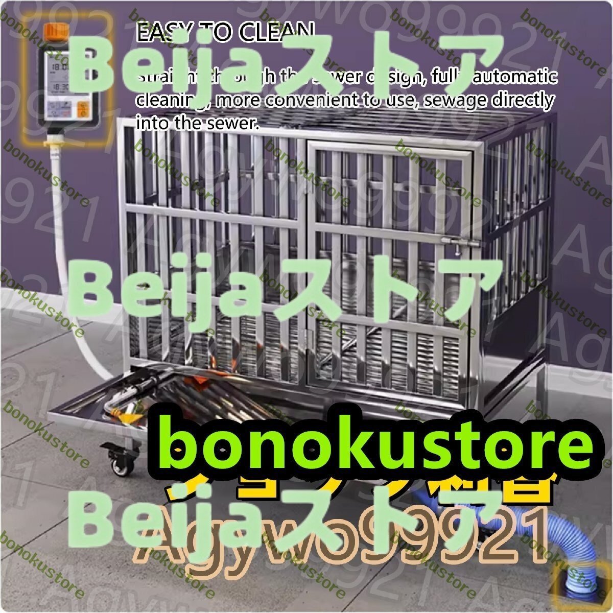 ステンレス製のペットケージ、犬用ケージ、車輪付きの屋内屋外犬小屋、自動で犬トイレを洗い流し付き 犬舎 脱走防止 小型犬/中型犬/大型犬(95cm/37.4in)