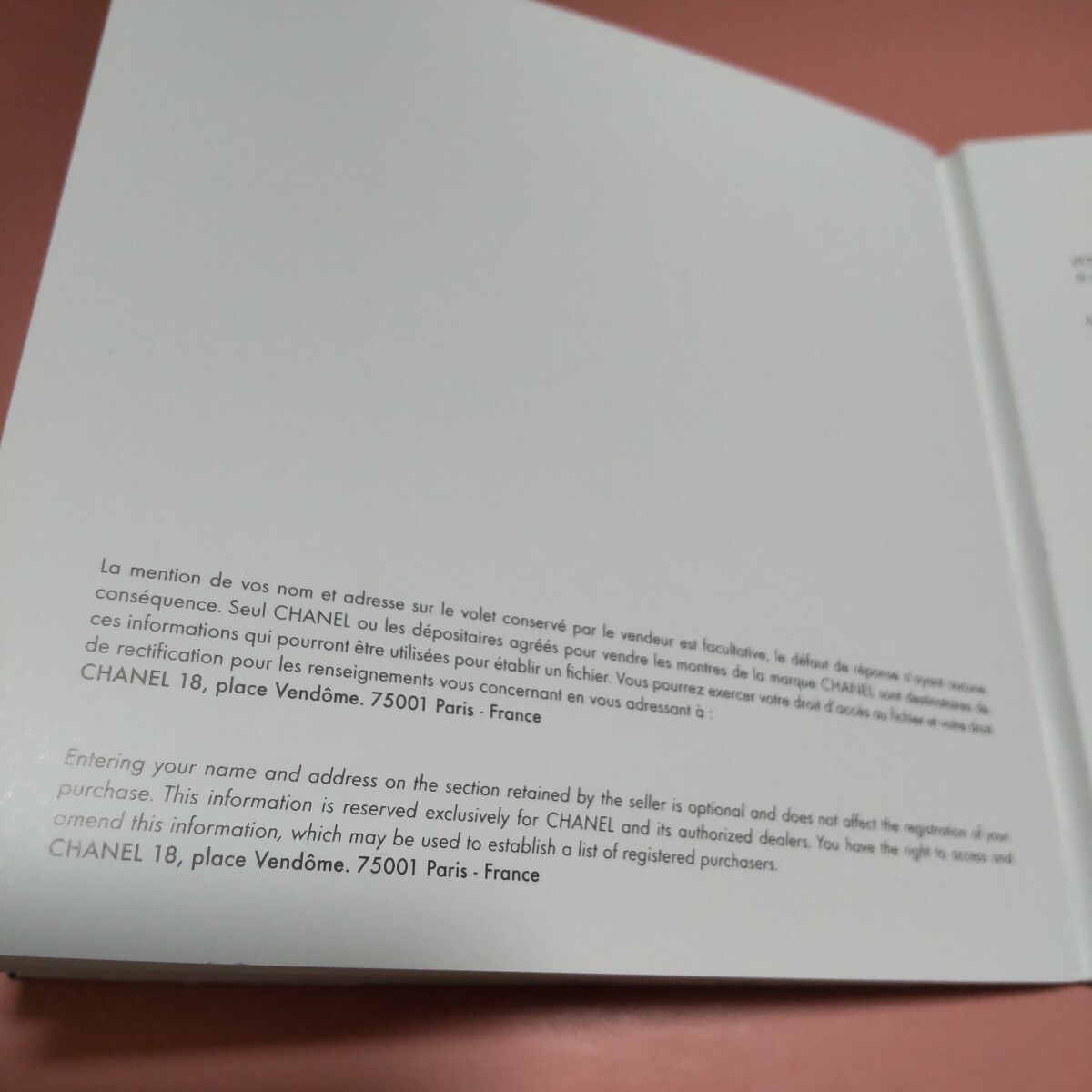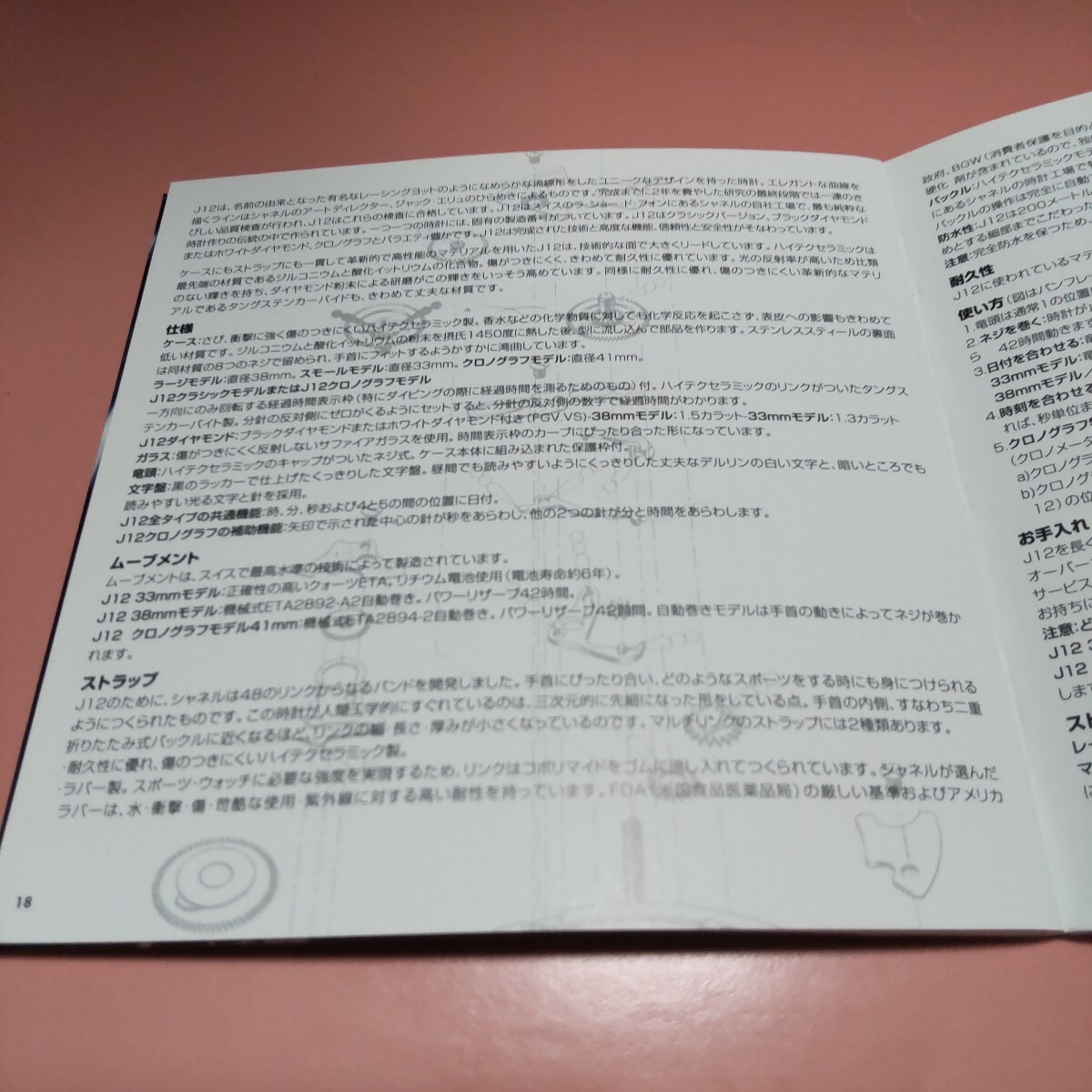 CHANEL 正規 シャネル 純正 冊子 取説 取扱説明書 モデル J12 付属品 2002~ オープン 未記入 部分あり 02