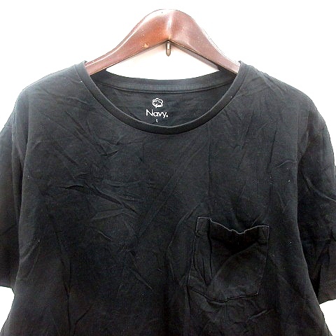 ネイビー Navy カットソー Tシャツ クルーネック 半袖 L 黒 ブラック /MN レディース