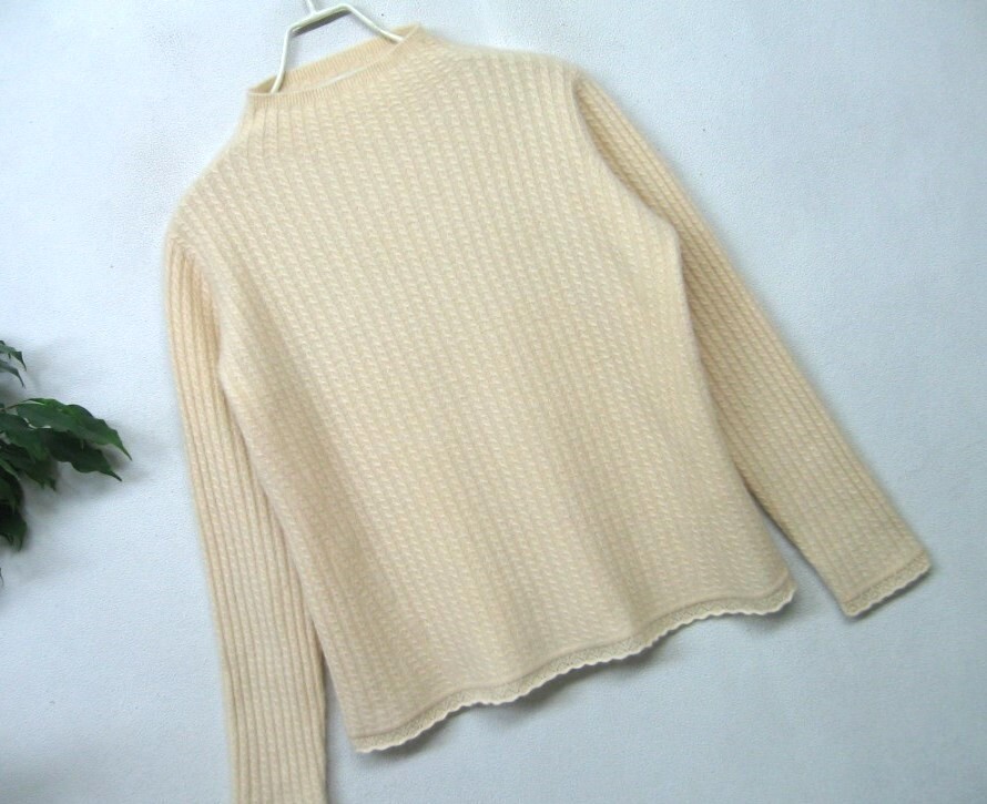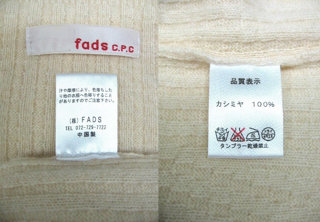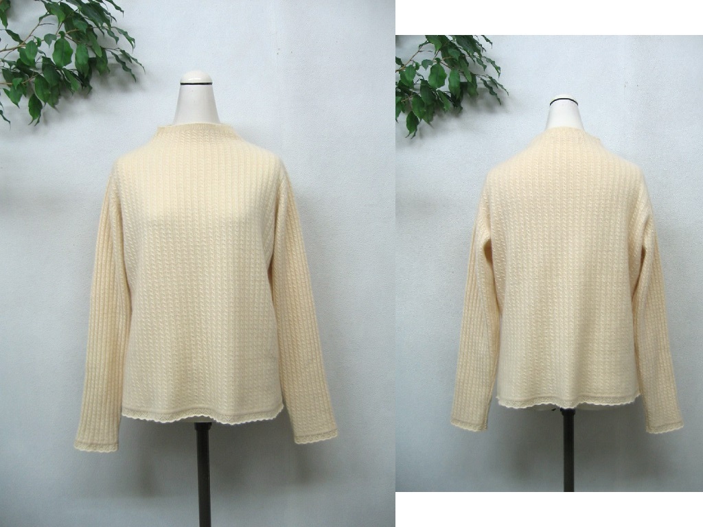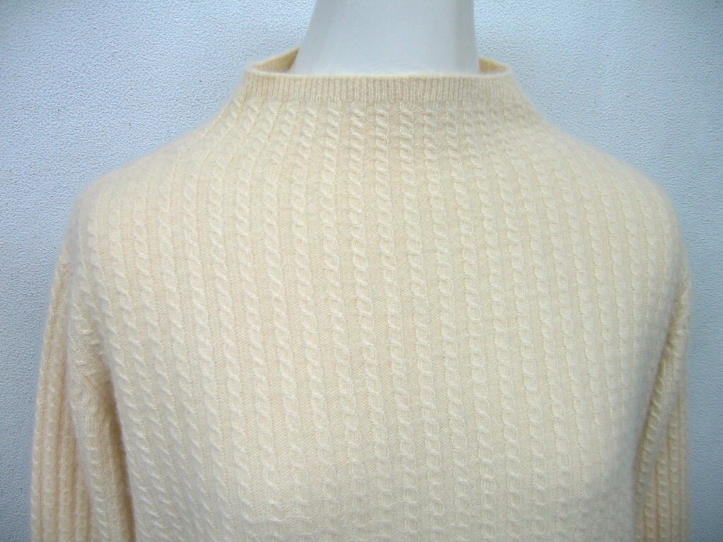 カシミヤ100% fads c.p.c FADS ★ 肌に優しい♪ 大人のケーブル編みニット ボトルネック ハイネック アイボリーベージュ系
