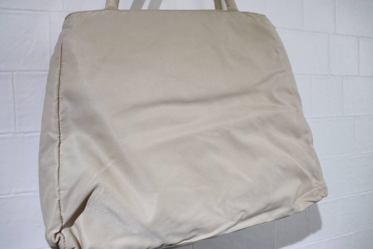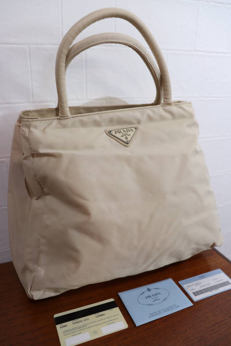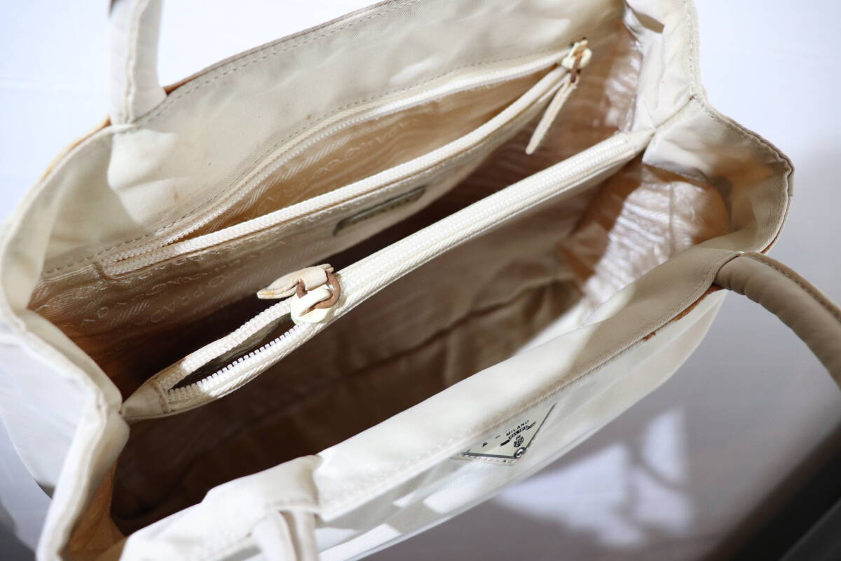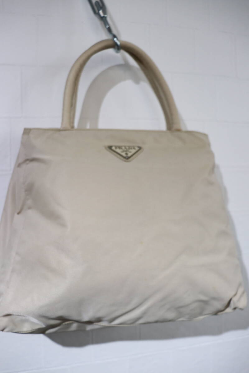 即決 2000年代初頭 PRADA プラダ B3864 3角プレート付き 仕切り版付き ナイロンハンドバッグ トートバッグ ベージュ