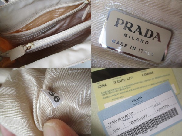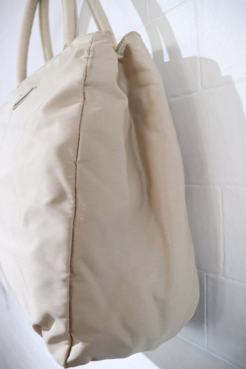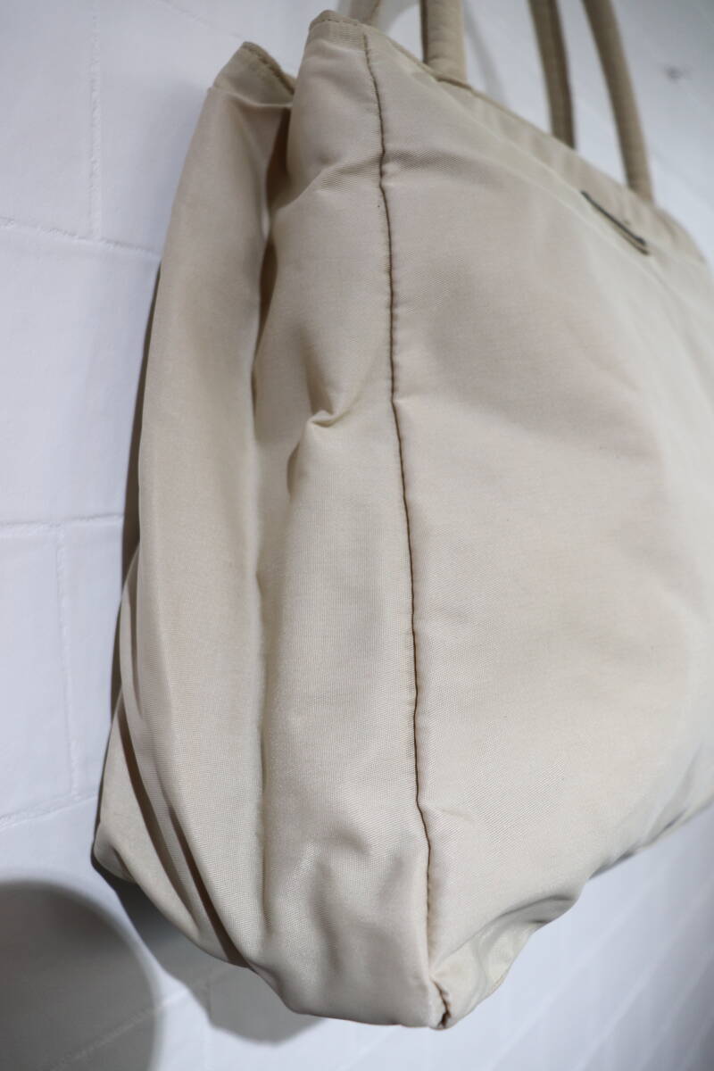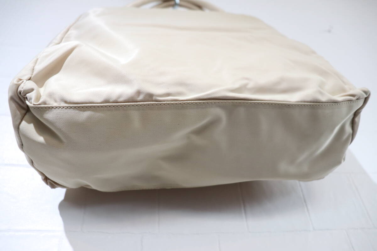 即決 2000年代初頭 PRADA プラダ B3864 3角プレート付き 仕切り版付き ナイロンハンドバッグ トートバッグ ベージュ