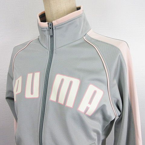 プーマ PUMA ジャージ ジャケット 長袖 ジップアップ ロゴ M グレー×ライトピンク スポーツウェア ※EKM レディース