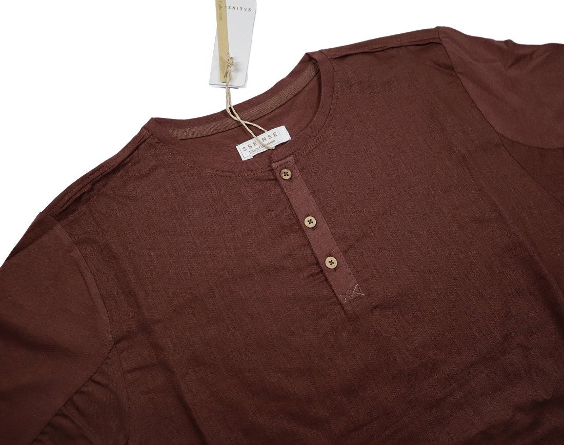 シンプルながらデザインがいい、大人仕様のヘンリーネック!【 SSEINSE / センス (伊 】正面リネン 背面コットン素材の ブラウンTシャツ M
