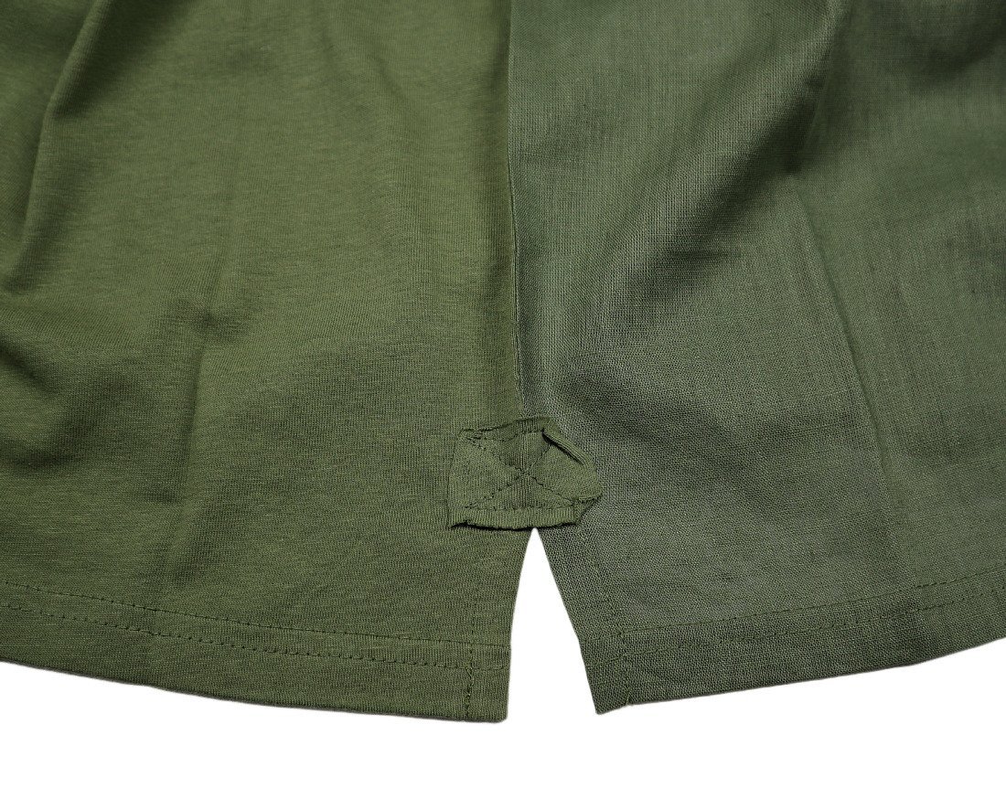 正面側は爽やかで清涼感あるリネンコットンの混紡素材を使用し、背面側やリブには伸縮性が高く汗の吸い取りもいいコットン100%を使用したスグれもののコンビ素材。かるくウォッシュド加工を施し、上品ながらこなれ感が出ています。「自然な風合いのウッドボタン」や「サルトリア風なXXのステッチ」「両裾のガゼットデザイン」も洒落ています!