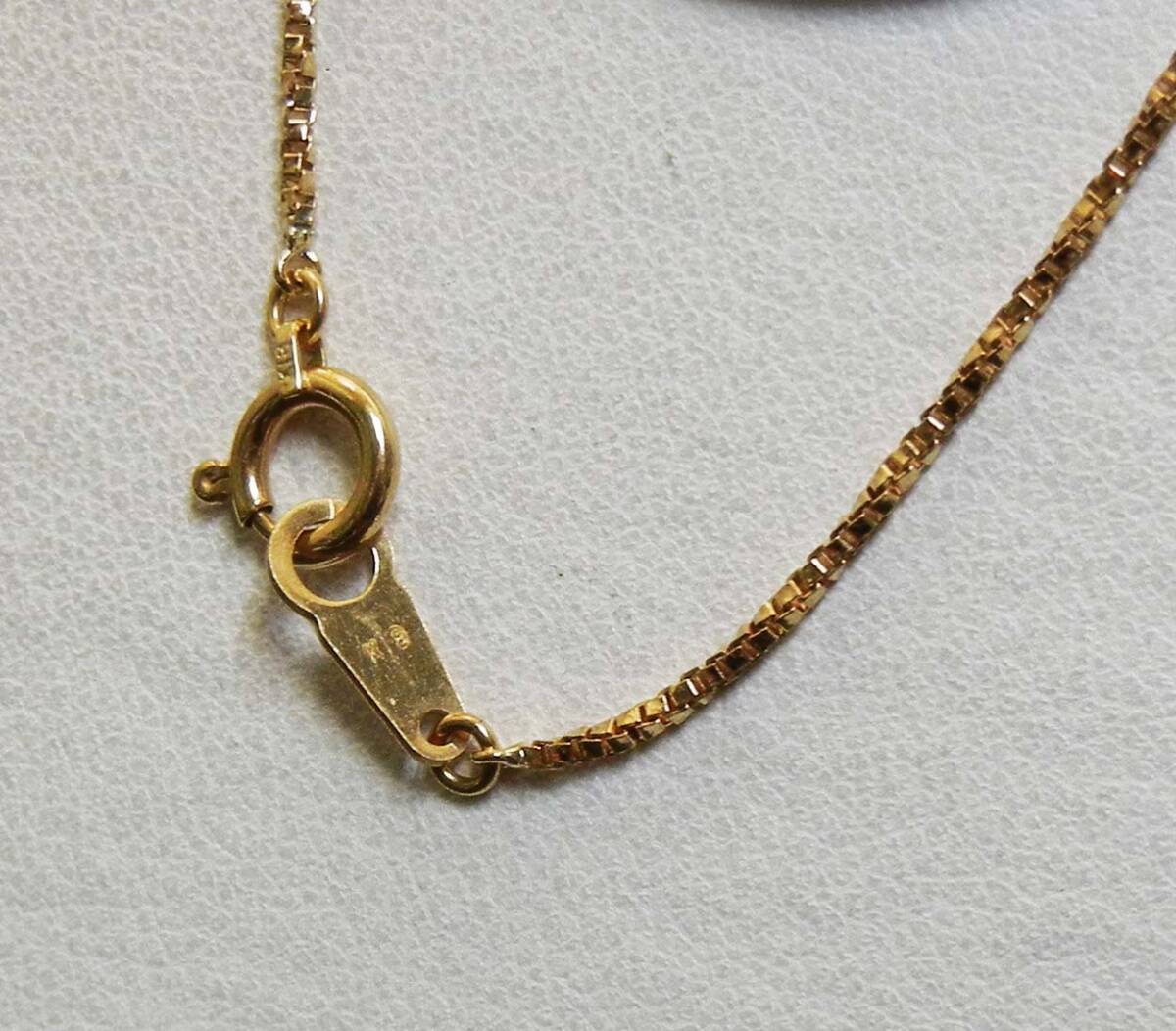 品名K18YG ネックレス ネックレスのサイズ約:最大幅1.0mm ネックレスの長さ: 約40cm 造幣局マーク K18刻印有り アジャスターカン無し 総重量 約2.9g 鑑定・鑑別書 有無: 無し * 新品 |