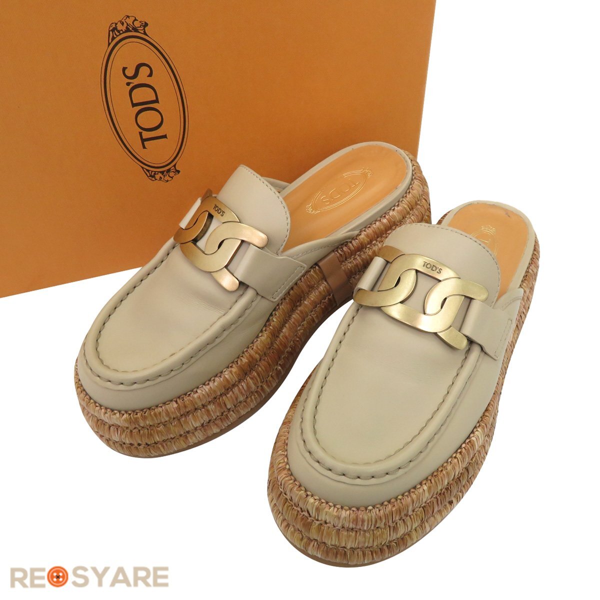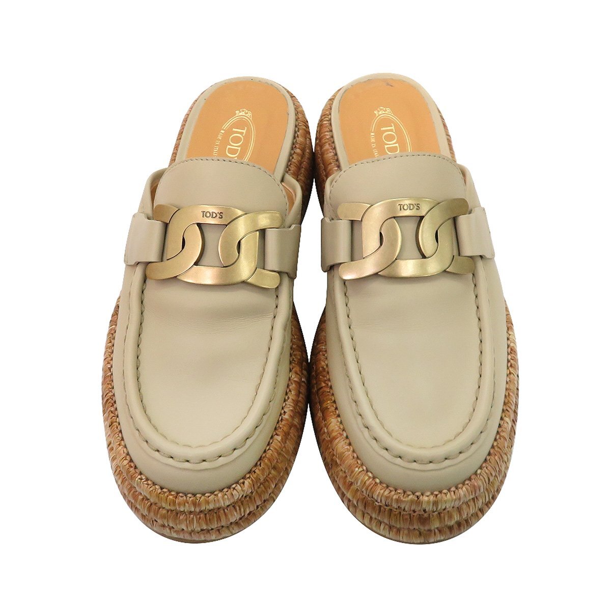 | ブランド トッズ/TODS 1920年代イタリアに創業。靴、バッグともに、基本的にトッズのコレクションは正統派で、機能性とそれを失わないレベルのモダンなデザインが特徴です。数々の定番商品を生み出し、イタリアならではの伝統の製法や素材へのこだわりは現在でも受け継がれ、世界有数のレザーグッズブランドとして君臨しつづけています。 ※鑑定済みの正規品です。万が一偽物の場合には全額返金致します。 商品説明 ☆美品☆ モカシンのアッパーとラフィアの裏地が付いたプラットフォーム ソールを組み合わせたこのクロッグは、しなやかなレザーで作られています。 パーソナライズされたメタル チェーン アクセサリーが特徴の、夏らしく新鮮なムードのモデルで、職人のテイストと現代的なアティテュードが独自に融合しています。 ●素材・・・レザー×メタルチェーン ●カラー・・・ベージュ系 サイズ ○表記サイズ・・・【36】 ※日本サイズへの換算は下記、注意事項欄の【日本サイズ換算表】をご確認下さい。 ○実寸サイズ(平置き) ・アウトソール全長・・・約26.3cm ・アウトソール最大幅・・・約10.3cm 商品状態・コンディション A・使用感が少なく、比較的着用回数が少ないとみられる商品 踵・つま先などに若干のスレや、インソールに汚れがございますが、弊社基準にて美品と判断できる商品です。 中古品にご理解のある方であればご納得頂ける状態だと思います。 付属品 保存袋/保存箱 |