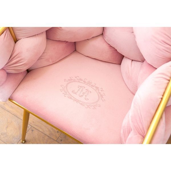 上品なデザインで、手触りの良いベルベット生地を使用しております。 座面中央にはそれぞれカラーごとに異なったアルファベットの刺繍が入っております。 お部屋のインテリアとしても、お客様用のイスとしてもとってもオシャレなアイテム。 組み立てはカンタン! 六角レンチが付属しておりますので足を取り付けるだけです。 |