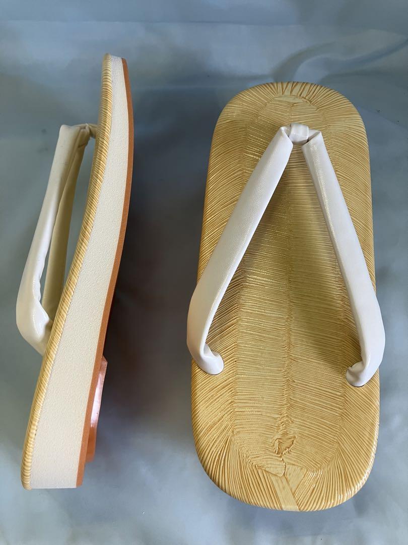 紳士草履  アメ底 黄畳表柄 鼻緒はビニール(デラクール)白Mサイズです 。
