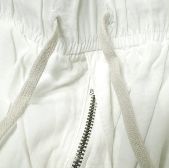 長めに設定されたダストカラーのウエストドローストリングスは、垂らす事で雰囲気が出ます。