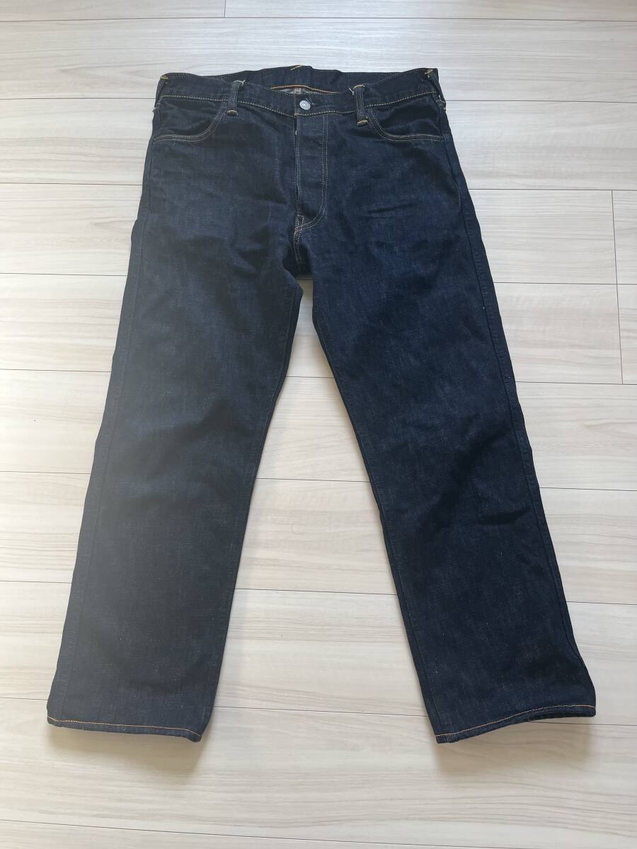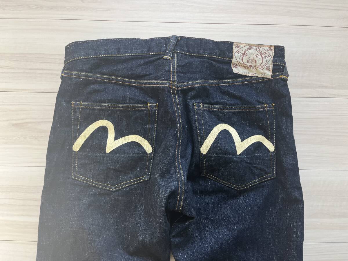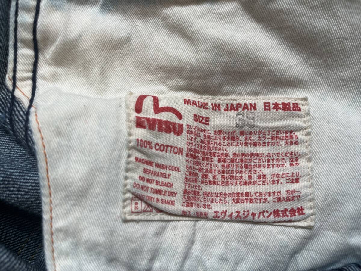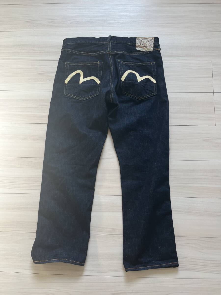2023年の夏に購入した、エヴィスのジーンズになります。採寸してから裾上げしたものが届く間に痩せてしまい、購入時と着用した時の感じが全然違ったものになってしまっていました。どうしようか迷ったのですが、タンスの肥やしになってしまっているので、出品することにしました。使用状況は、自宅での試着15分程度です。平置きでのサイズは、総丈約102cm、股下約69cm、ウエスト約45cm、ワタリ約28cm、裾幅約20cmになります。このジーンズは、エヴィス・ジーンズがずべて中国製になる前の最後の製品です。ジーンズ好きの方、エヴィス好きの方に履いてもらいたいと思っています。神経質な方は入札をご遠慮願います。また、2NOでお願いいたします。たくさんの方のアクセスをお待ちしています。