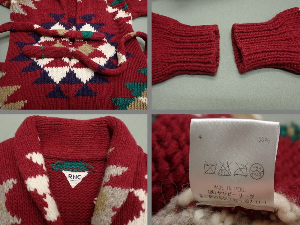 RHC RON HERMAN ロンハーマンのニットカーディガンです。サザビーリーグ取扱いのペルー製、とても雰囲気のあるデザインですね。素敵にお使い頂けると思います。気になる方は是非ご検討下さい。 | |