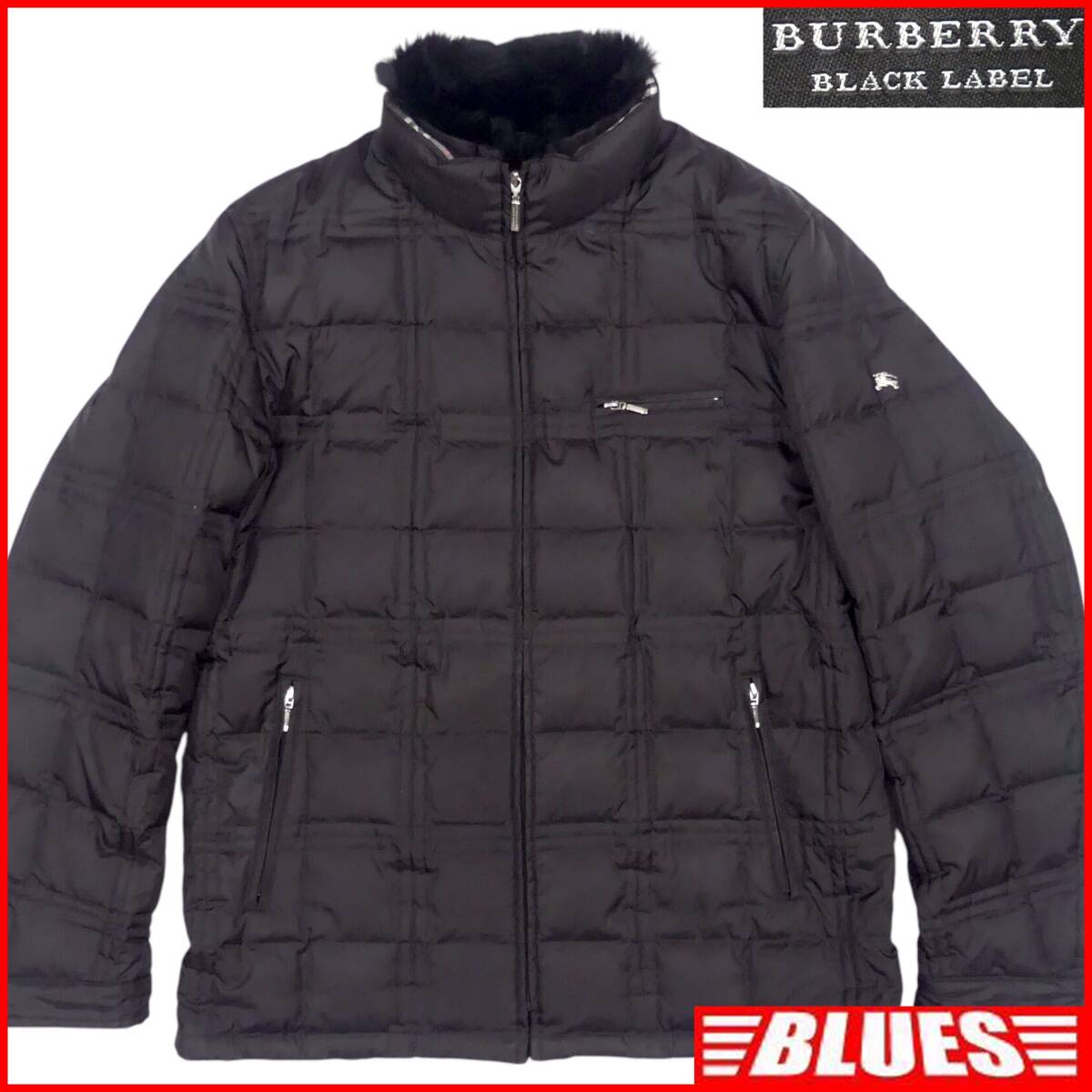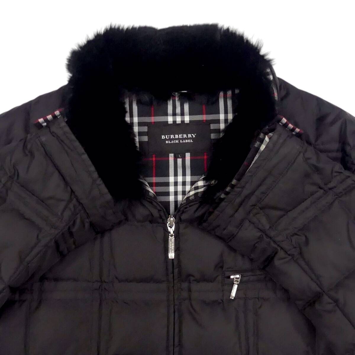 即決★BURBERRY BLACK LABEL★メンズ L 廃版 ダウンジャケット バーバリーブラックレーベル L 黒 ラビットファー ノバチェック