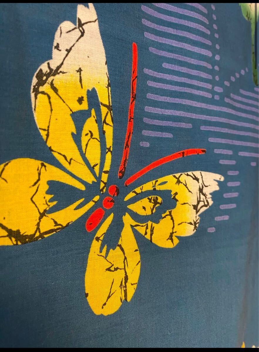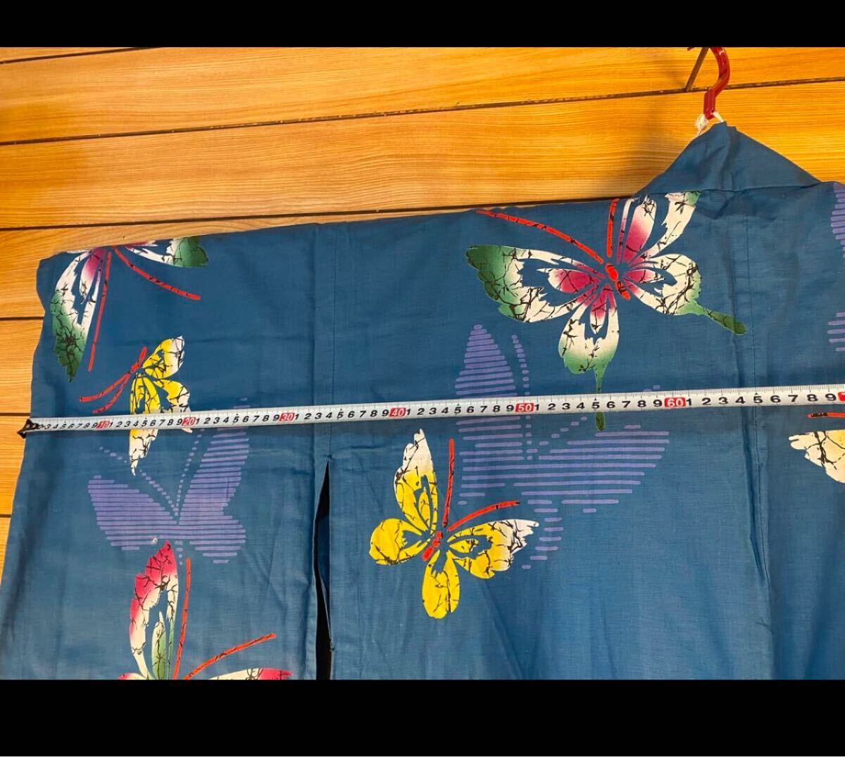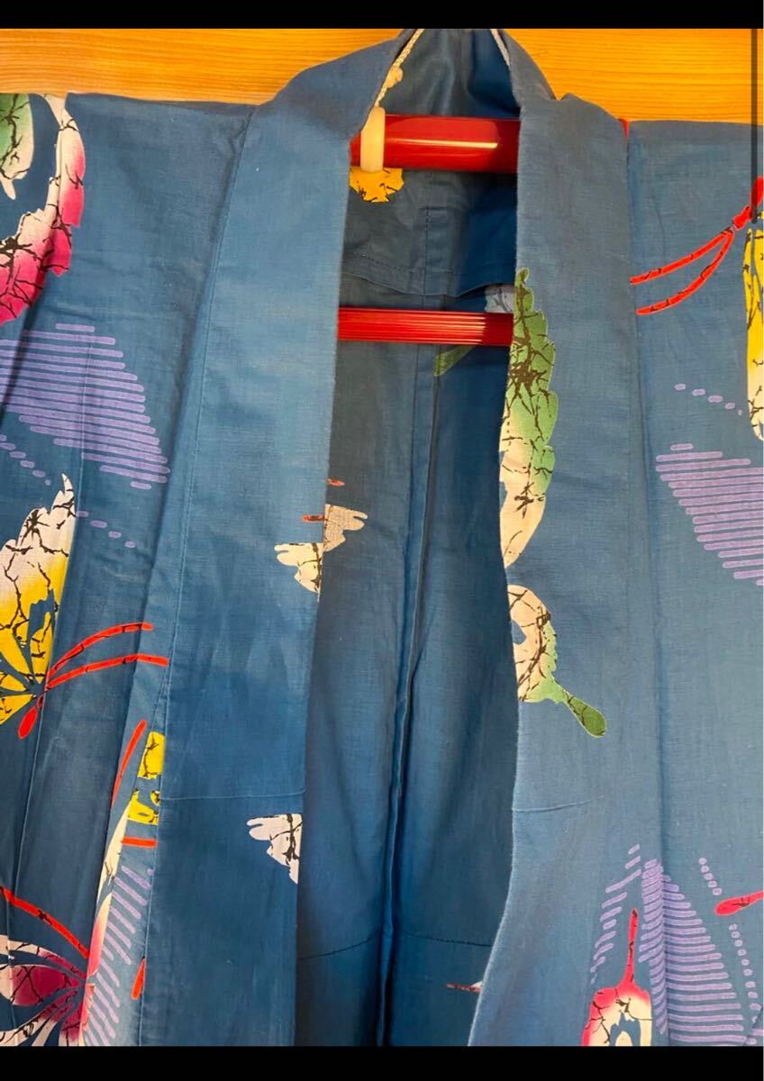 美品! 浴衣 身丈152 綿 蝶 藍色