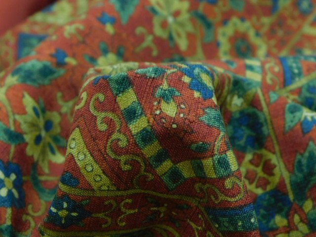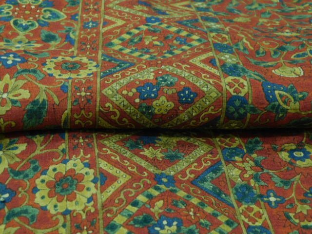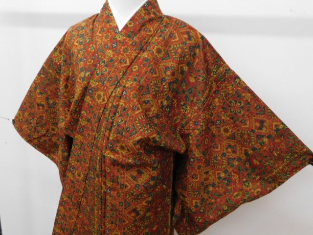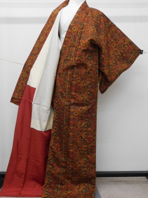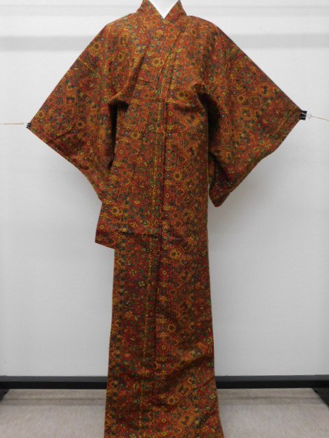 〔楽布〕P32380 結城紬地 更紗 小紋 袷 c