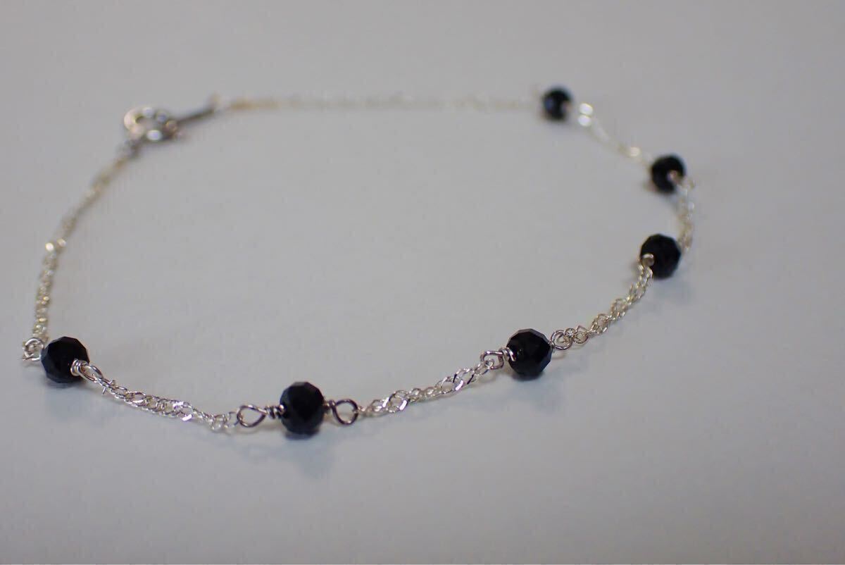 pt850 21cm プラチナ オニキス ステーションブレスレット スクリューチェーン0.9mm