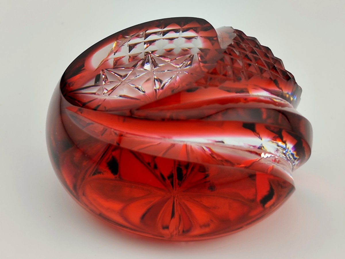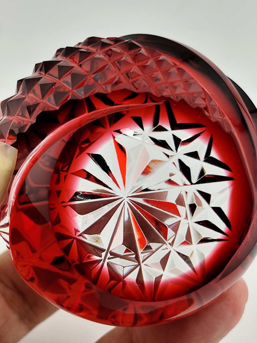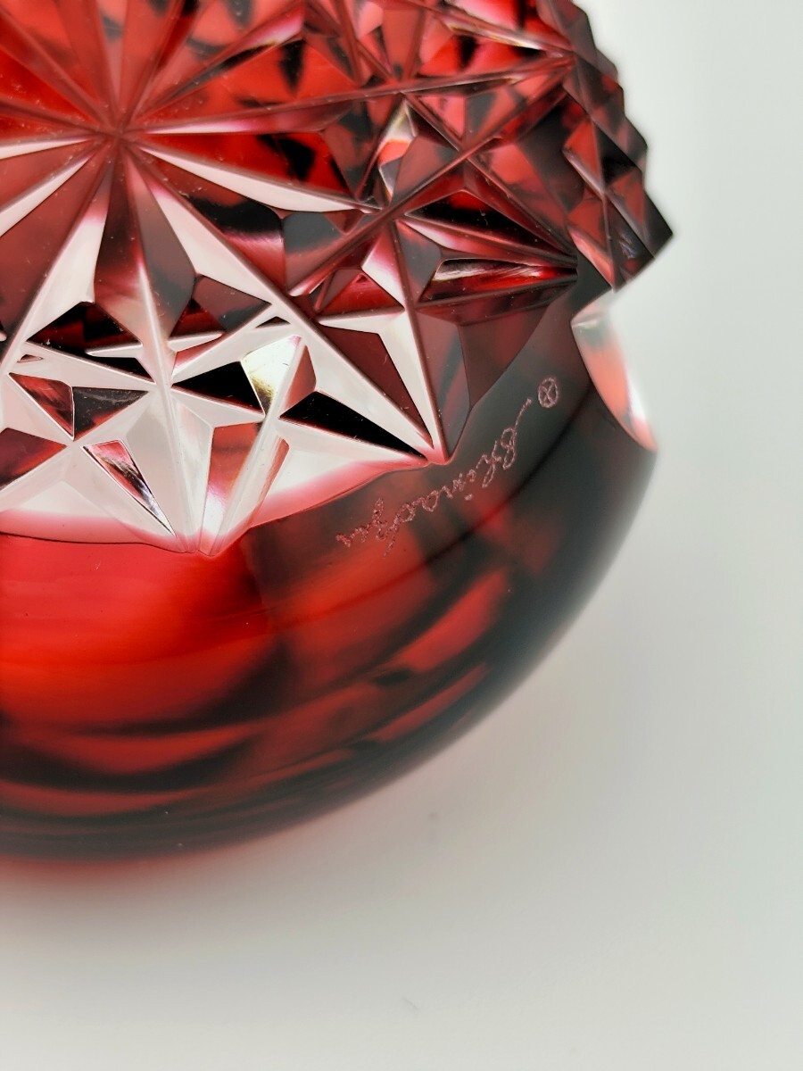 色被せガラスに切子模様が施されており、切子の深い彫りと幻想的で美しいグラデーションの色調が魅力の素晴らしい逸品です。
