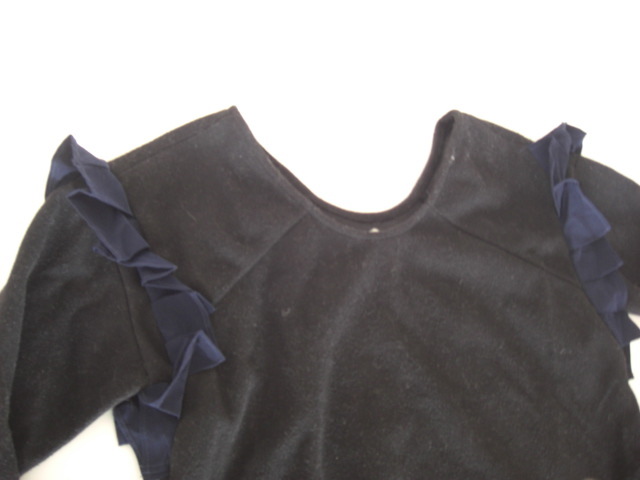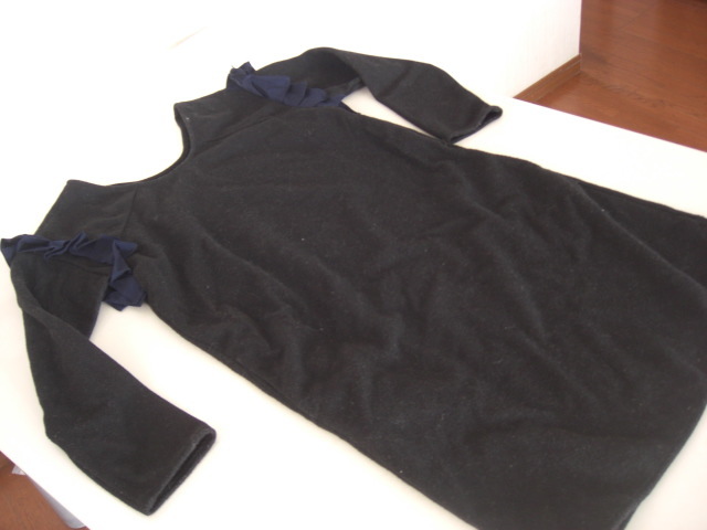 美品ピルヴィ 肩フリルワンピース黒 フェリシモS