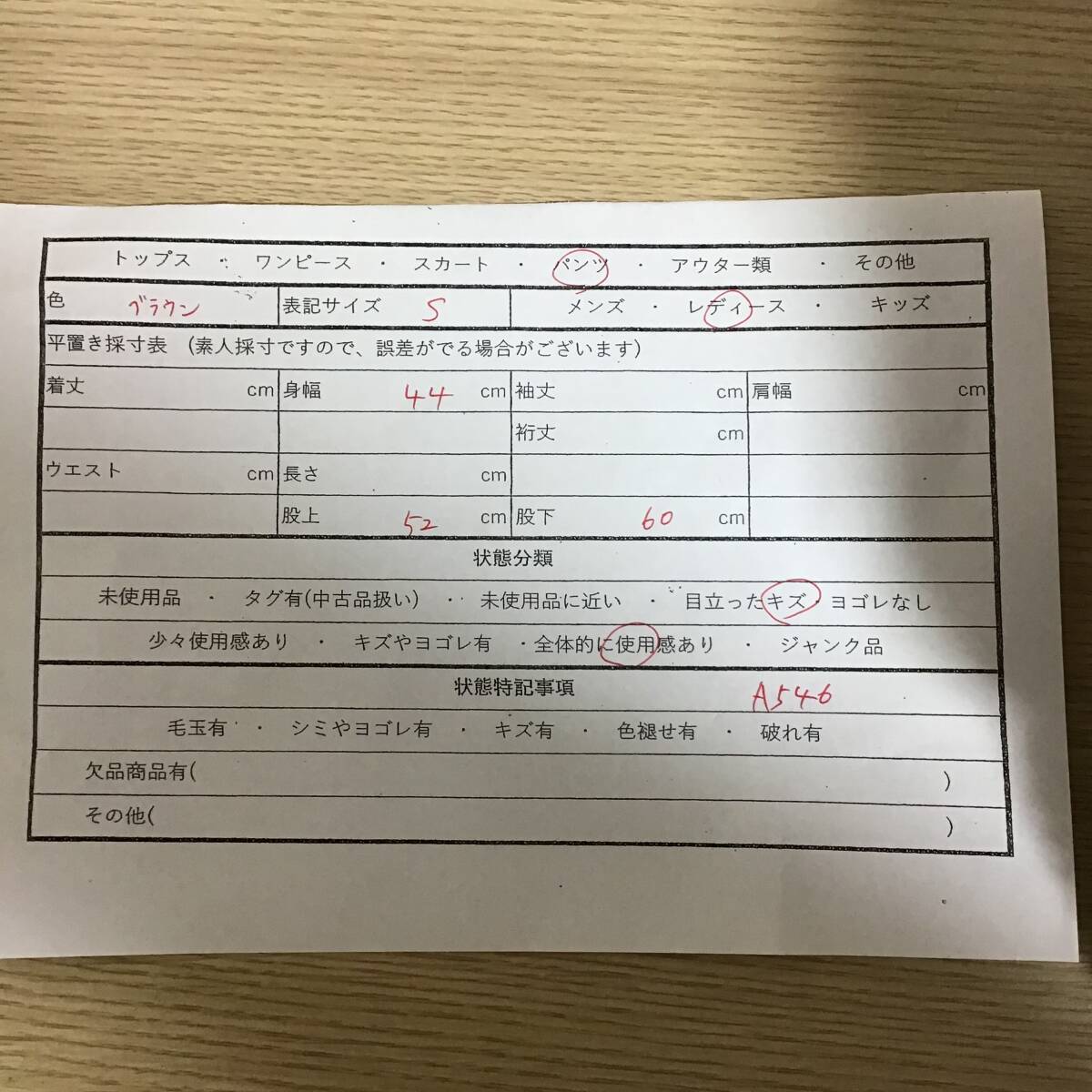 個人採寸ですので、誤差がある場合がございます。