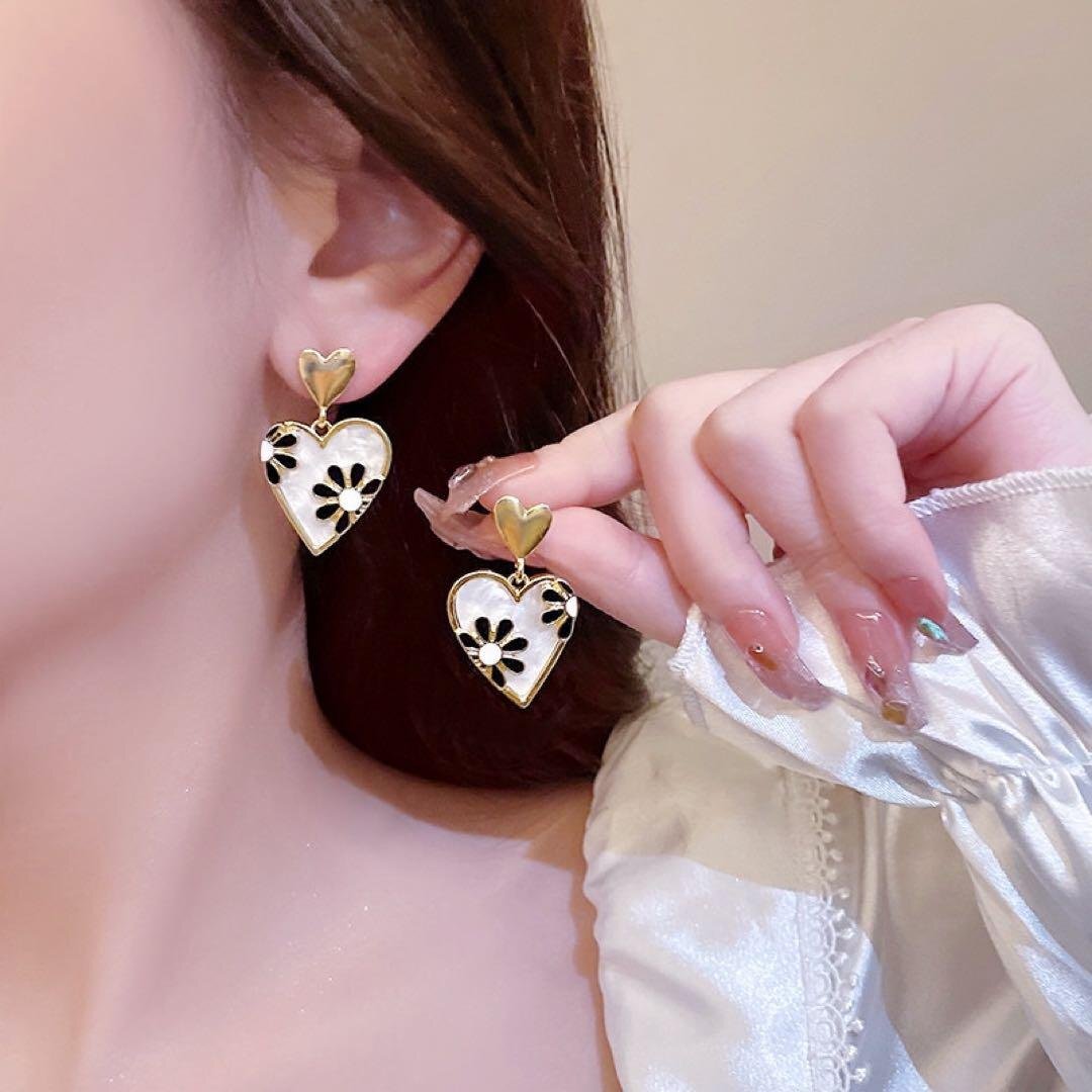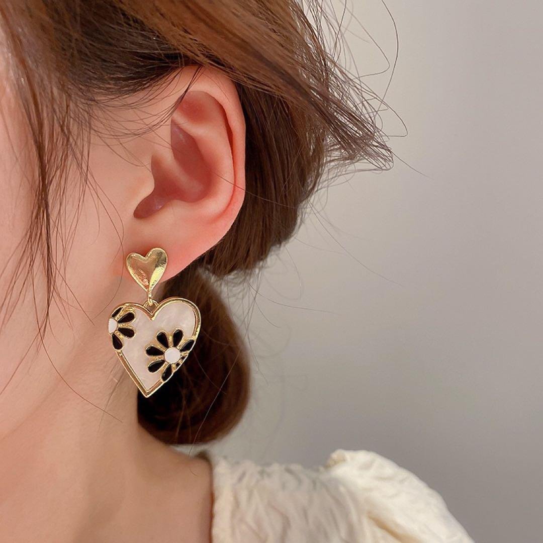 大人気 白いハートピアス レディースピアス シルバー925針 アレルギー対応 ピアス