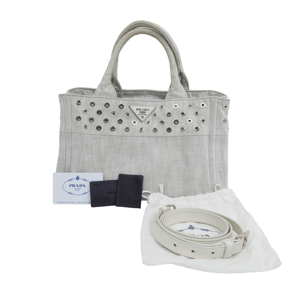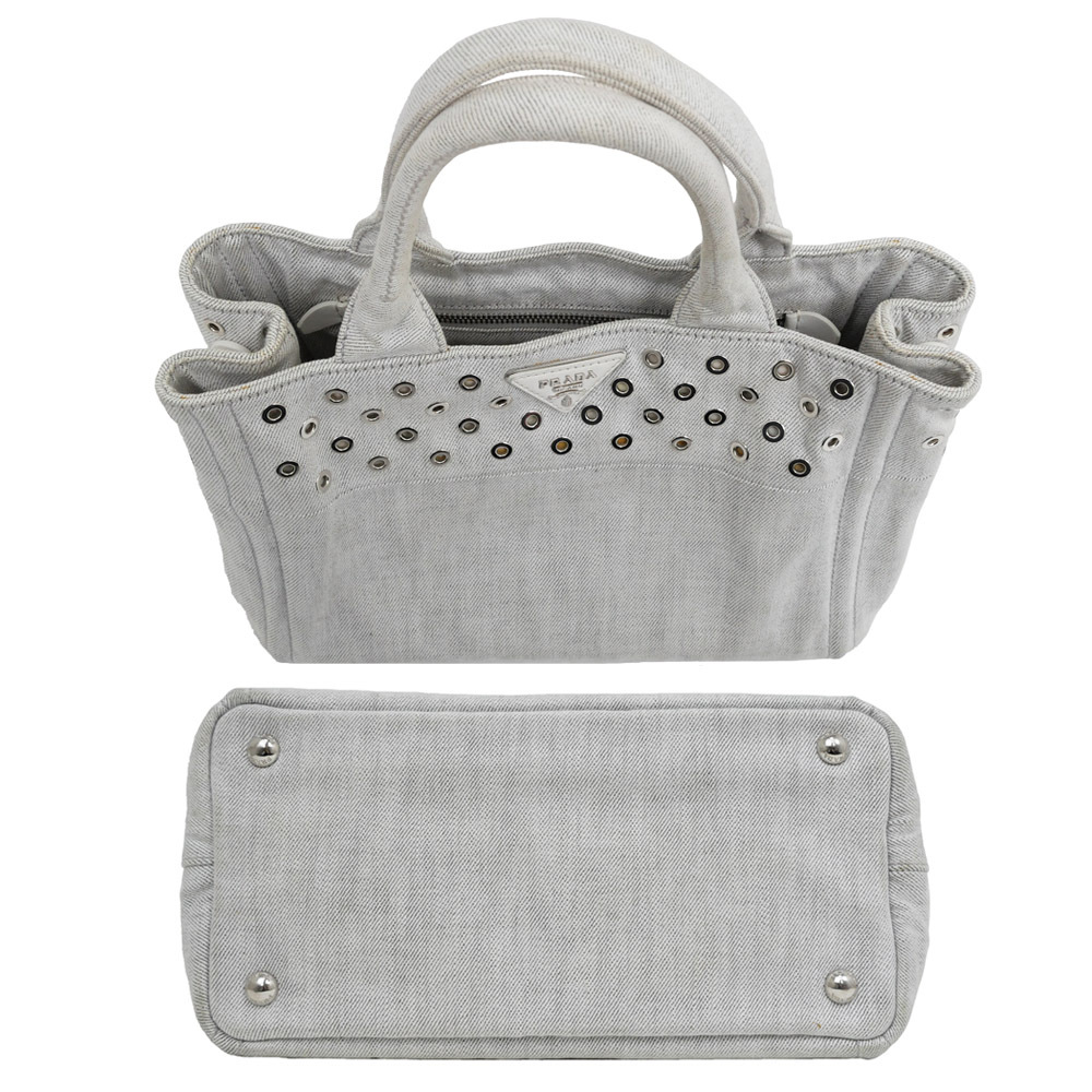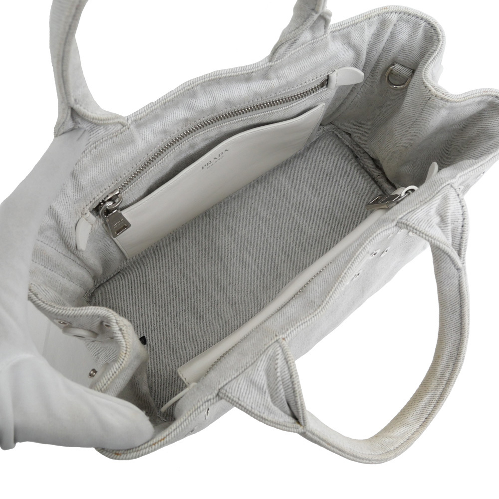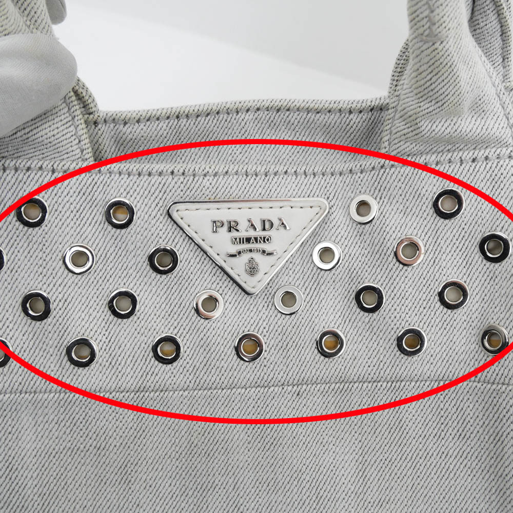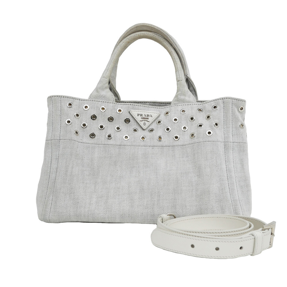【名東】プラダ カナパ デニム ビジュー ハンド 2WAY ショルダーバッグ 1BG439 グレー レザーストラップ レディース その他