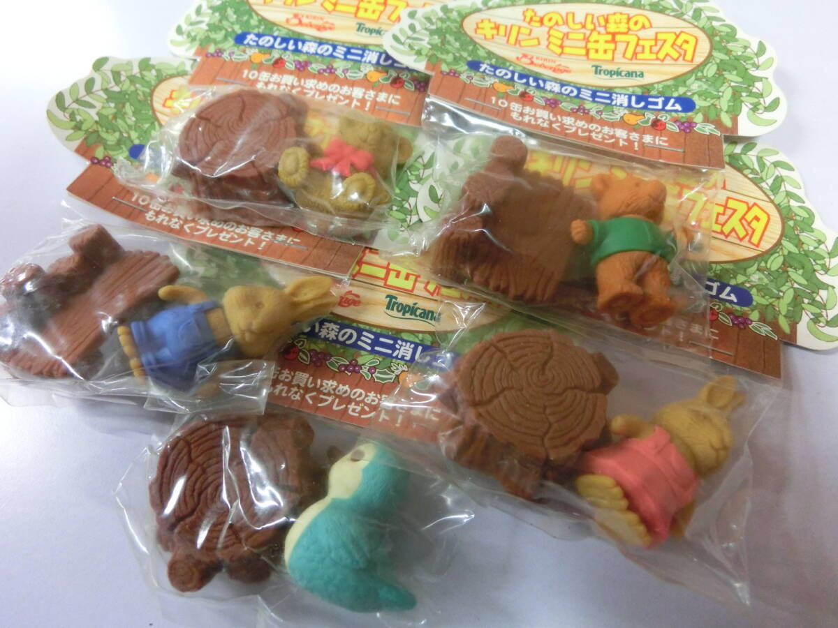 KIRIN たのしい森のミニ消しゴム 新品 5個セット ノベルティグッズ 鳥 ウサギ クマ 昭和 レトロ うさぎ くま トリ ミニ缶フェスタ