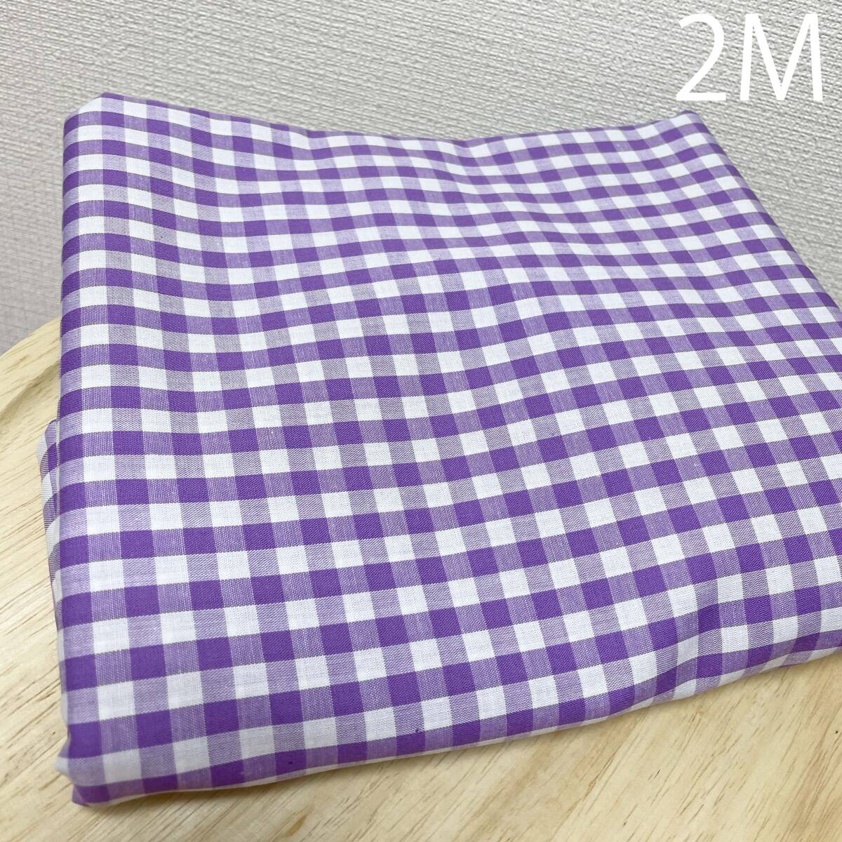 特価2m先染めギンガムチェック柄★布はぎれ生地チェック格子柄パープル紫ラベンダー