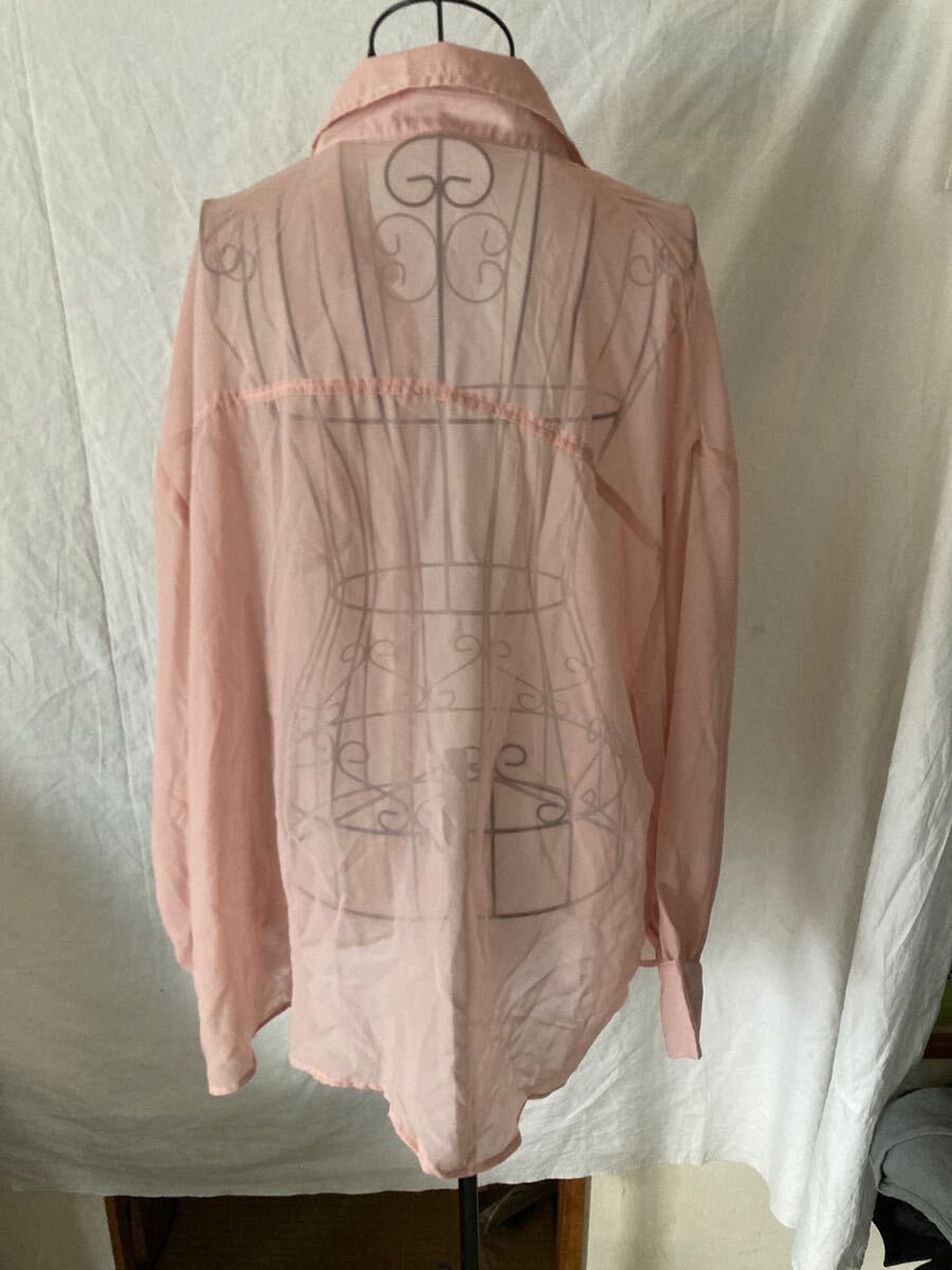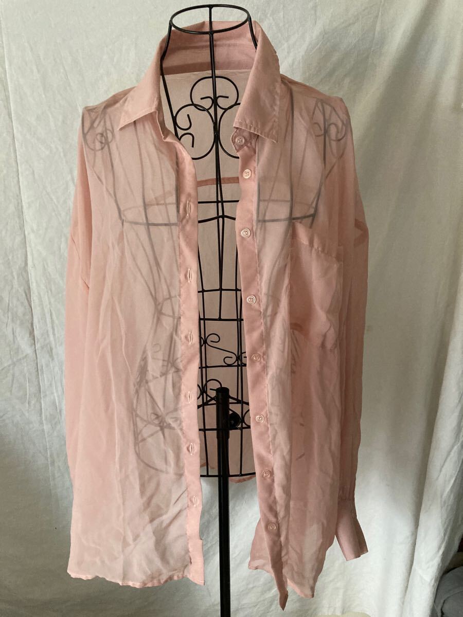HOLIDAY薄手のピンク長袖シースルーブラウス 長袖シャツ、シンプルなデザインが魅力。