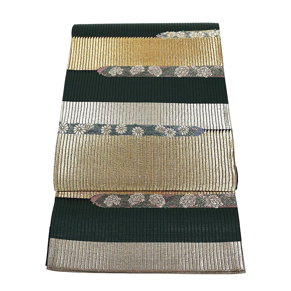 | 西陣織袋帯 鎧段文 金・銀・緑・縞地 鎧段文文 桜・牡丹・菊・霞文 未使用品 仕立て上がり |