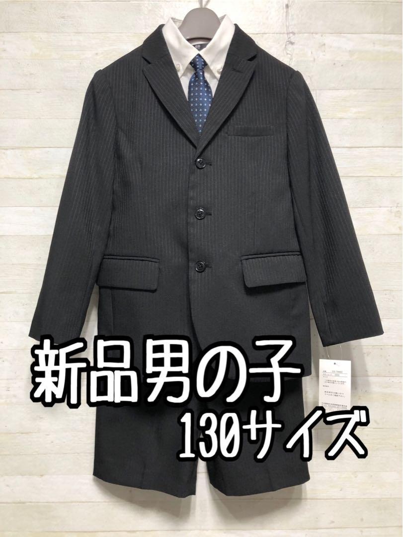 新品☆男の子130黒系フォーマルスーツ4点ネクタイ入学式卒業式◯D257
