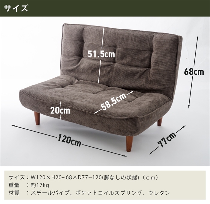| [コーデュロイ]ポリエステル91%、ナイロン9% [PVCレザー]合成皮革 スチールパイプ、ポケットコイルスプリング、ウレタン |