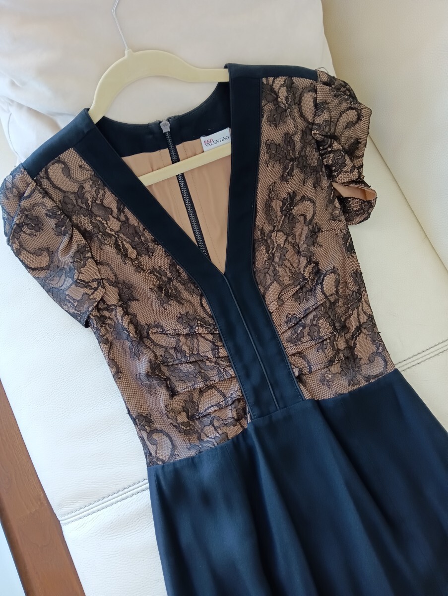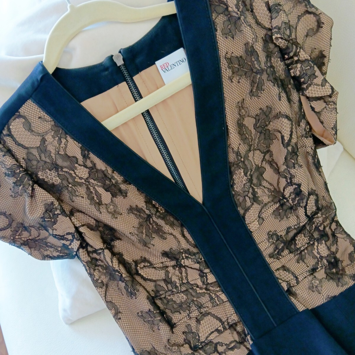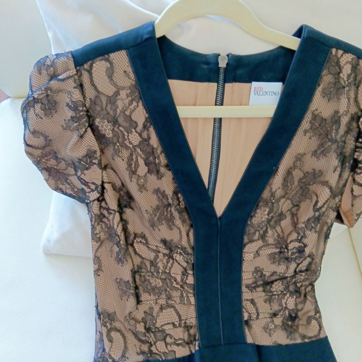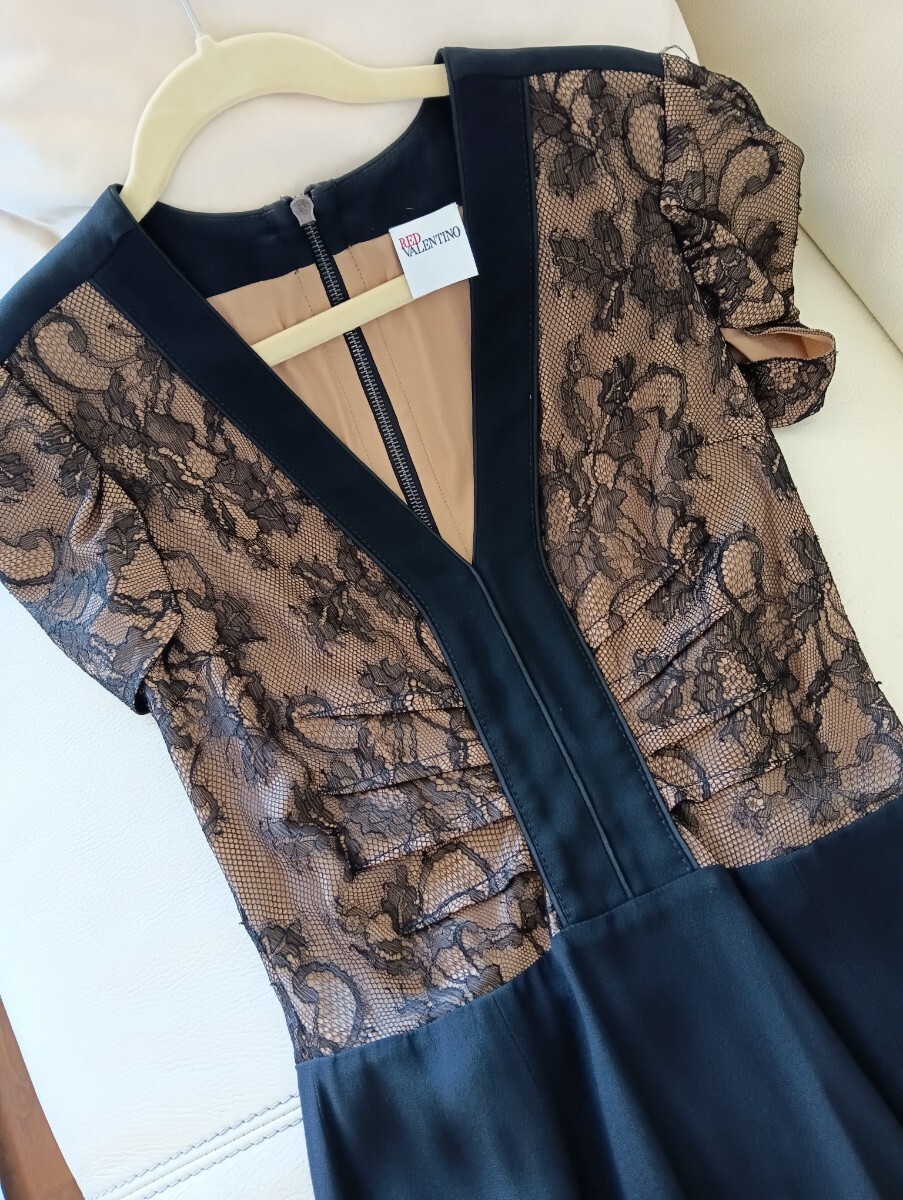 レッドヴァレンティノのエレガントなブラックレースワンピースです。