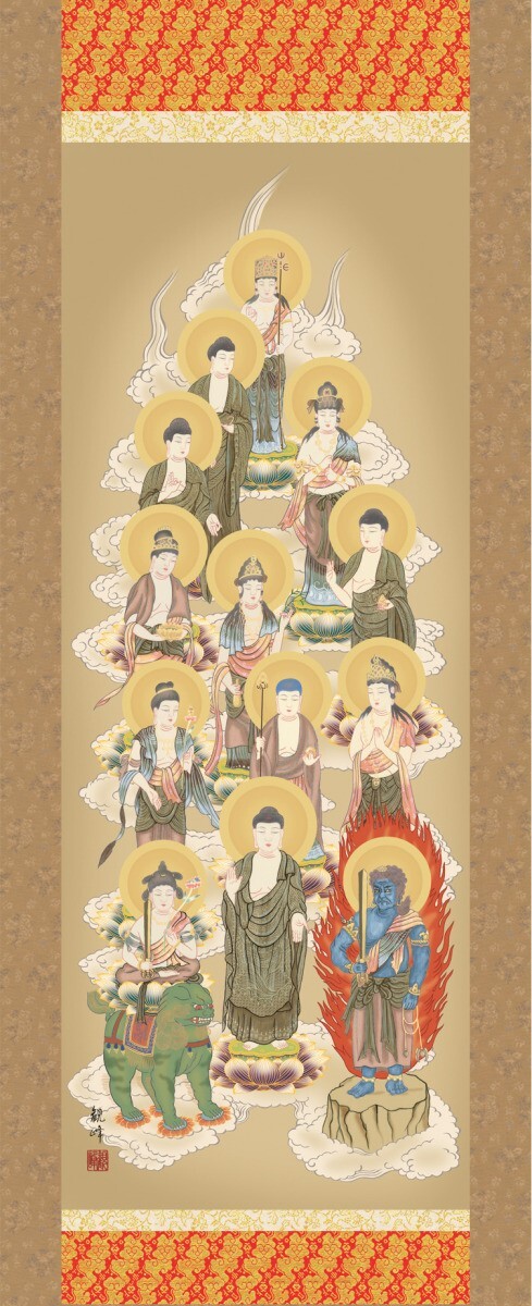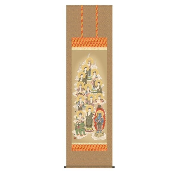 掛け軸 掛軸 純国産掛け軸 床の間 仏事画 「十三佛」 山村観峰 尺八 化粧箱収納 オニックス風鎮 防虫香サービス