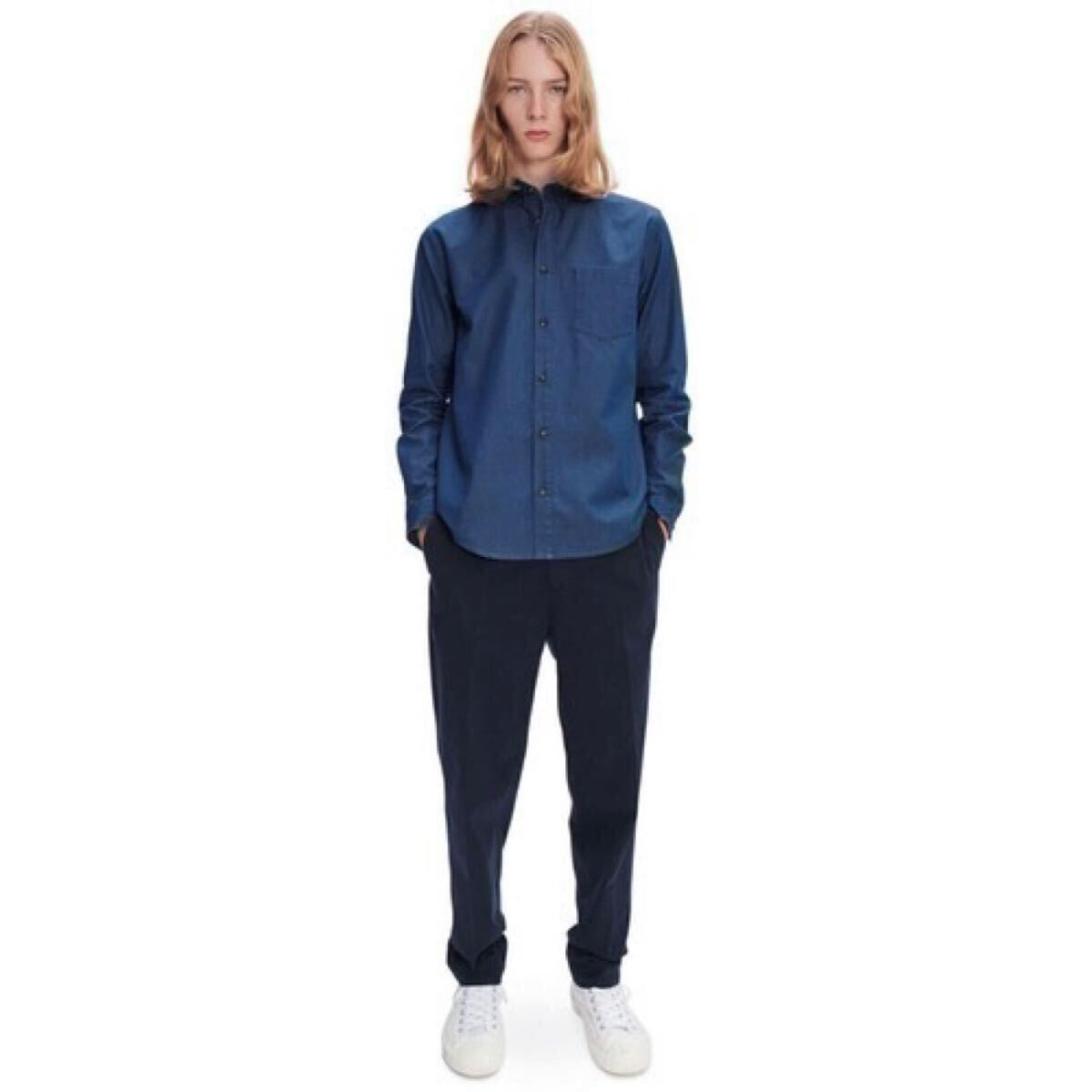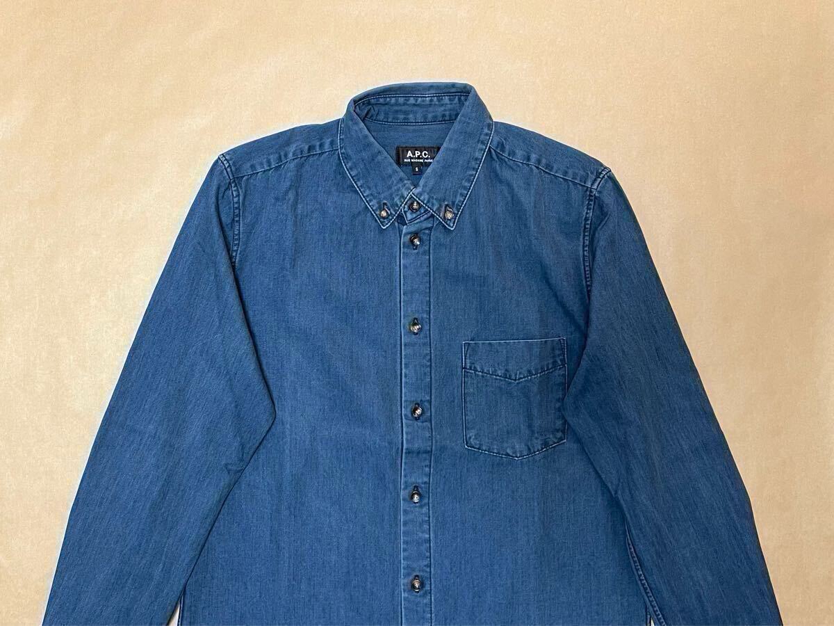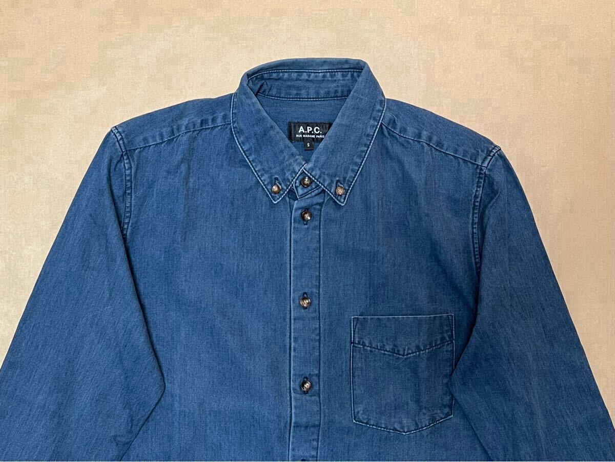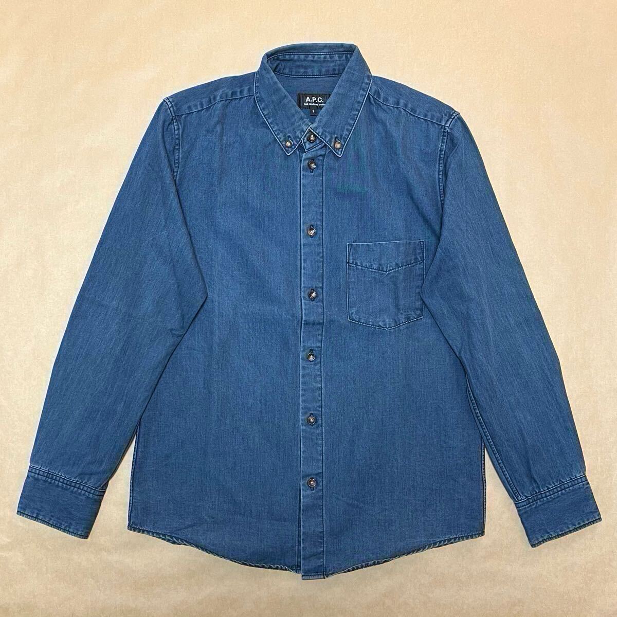 美品 A.P.C. 薄手 デニム 長袖 シャツ インディゴ ネイビー S コットン ボタンダウン カジュアル APC アーペーセー @b173