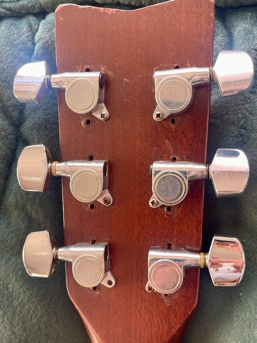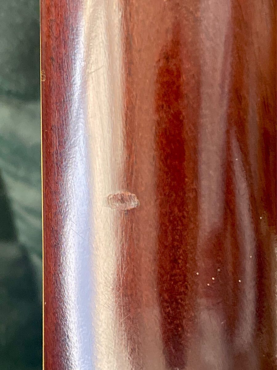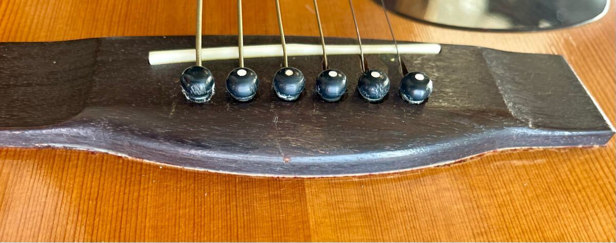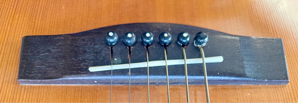 ネック、フレットとも問題ありませんが、ブリッジが再接着されています。剥がれるようなことはないと思います。ネック、ボディにすり傷、打痕があります。