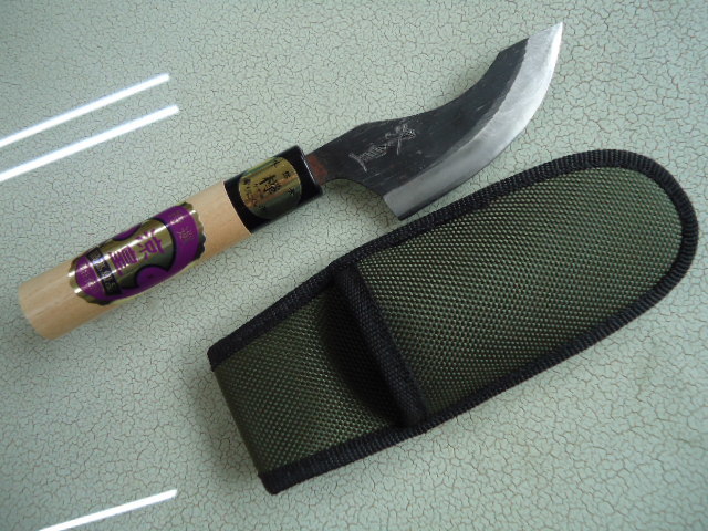 60 イノシシ皮剥ぎ 青二鋼・両刃 ケヤキ柄