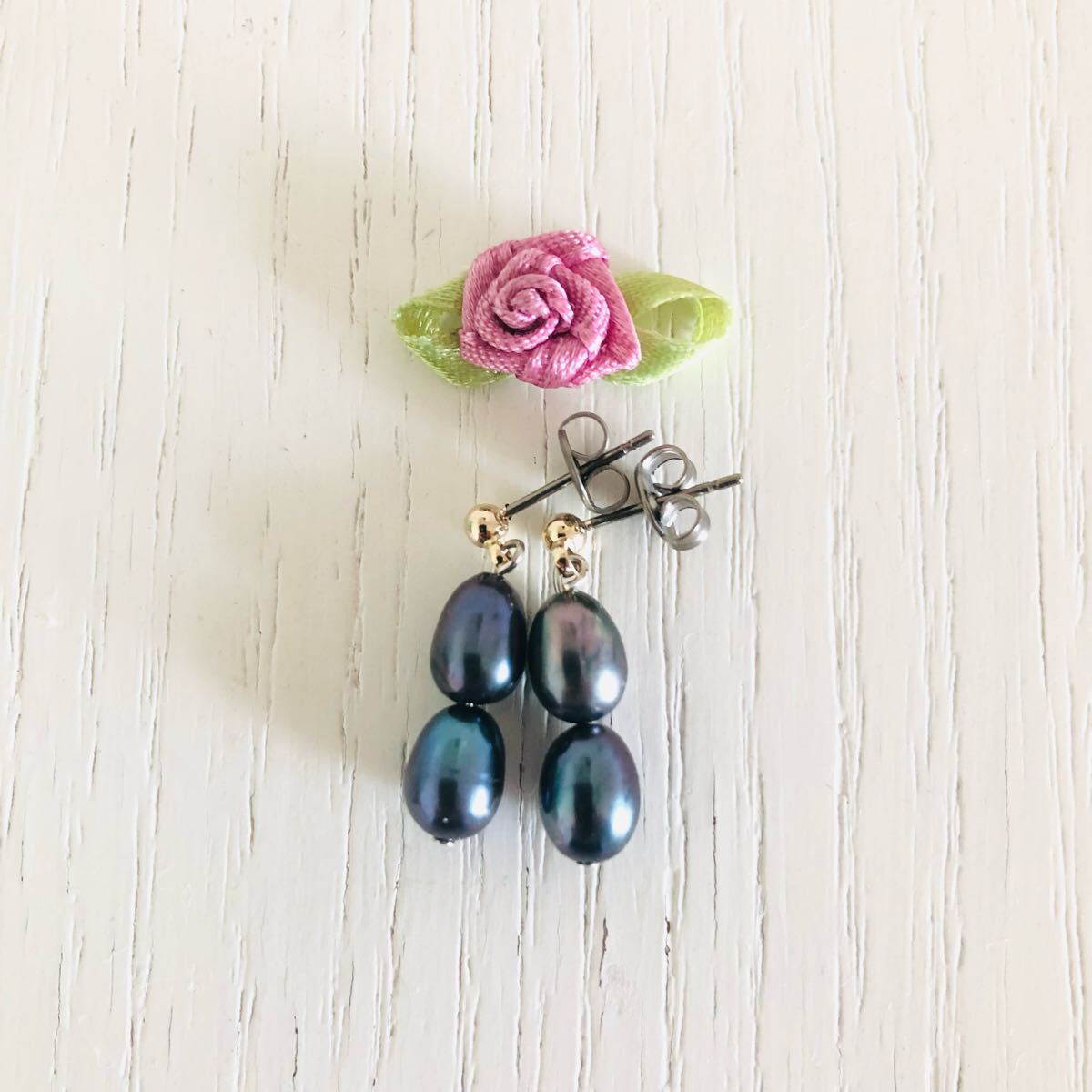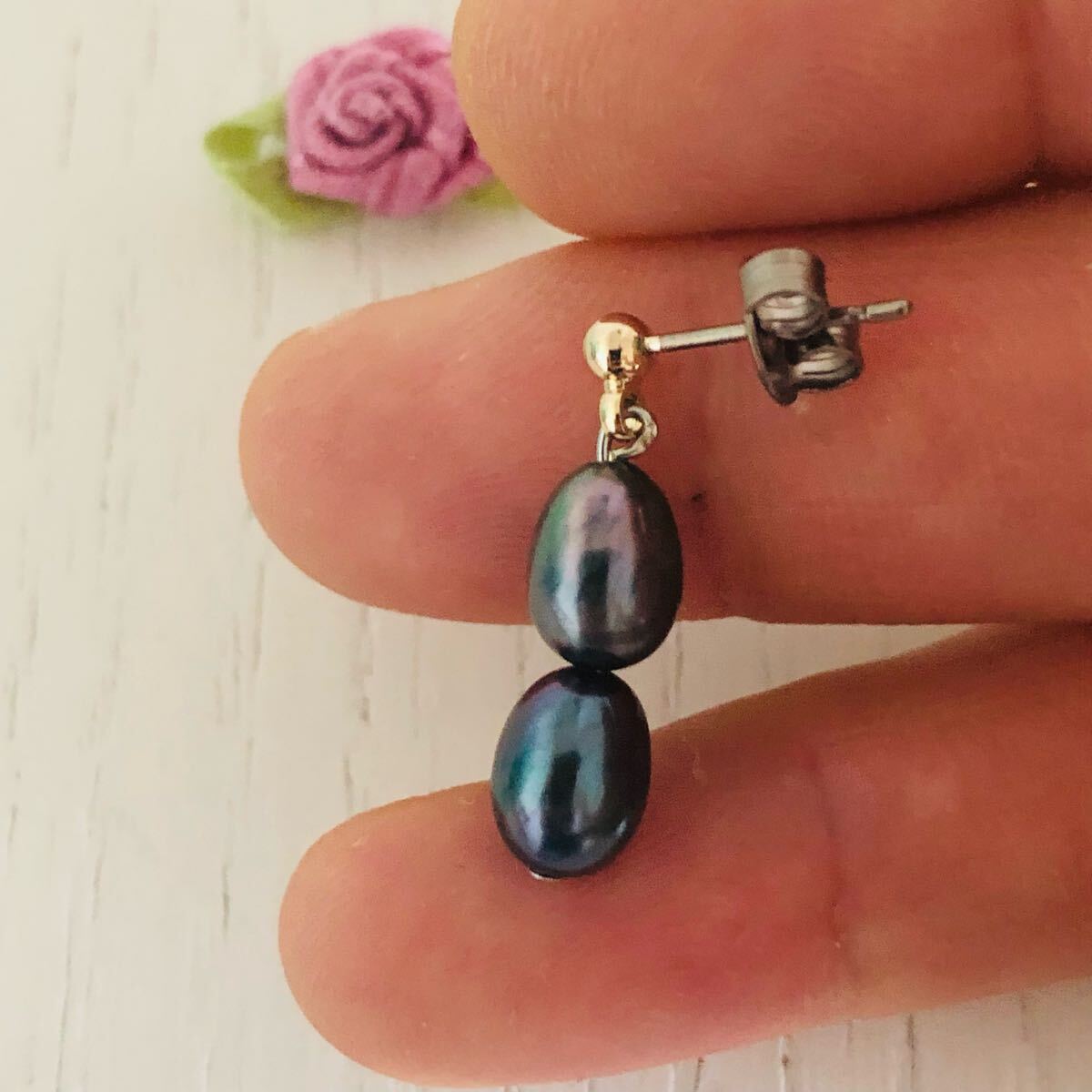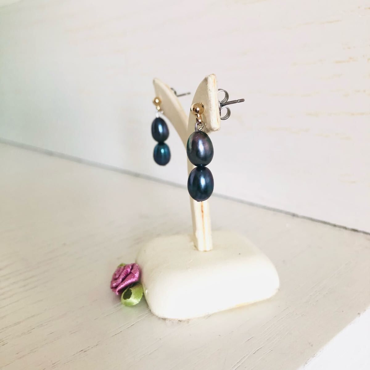 ピーッコク色のエレガント高級淡水パールピアスです。