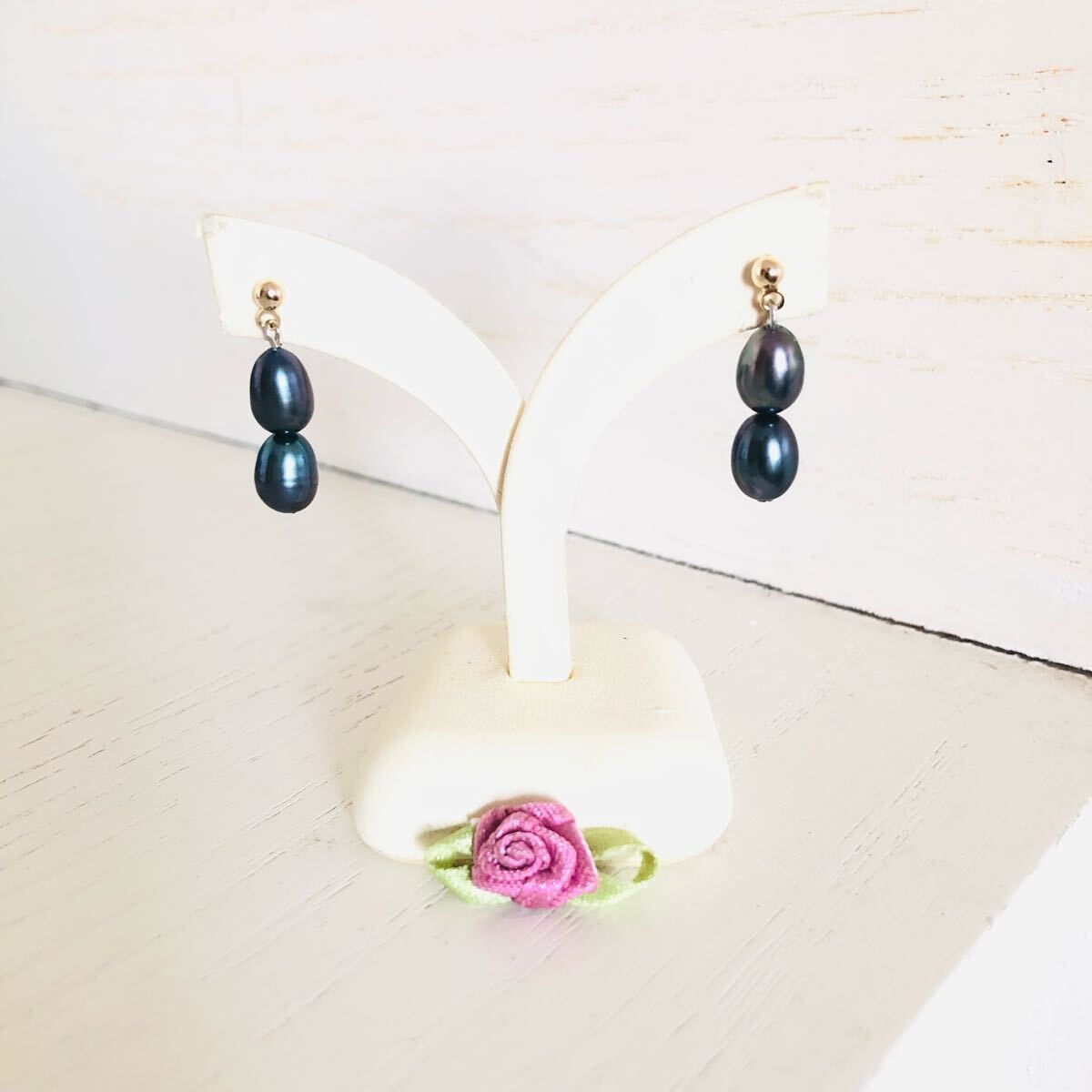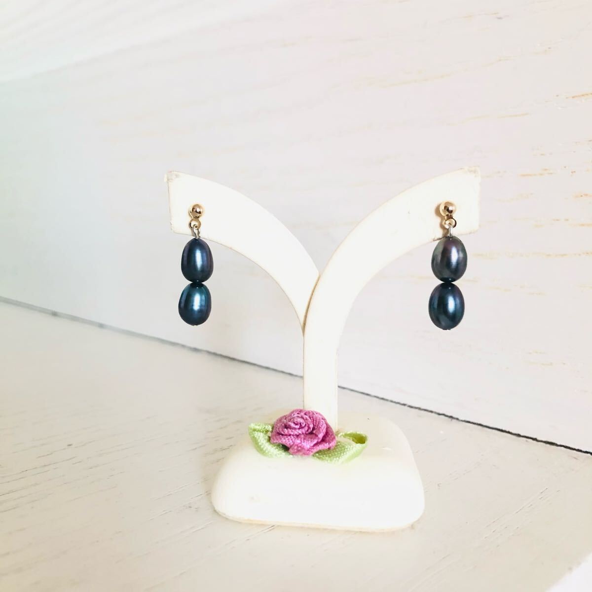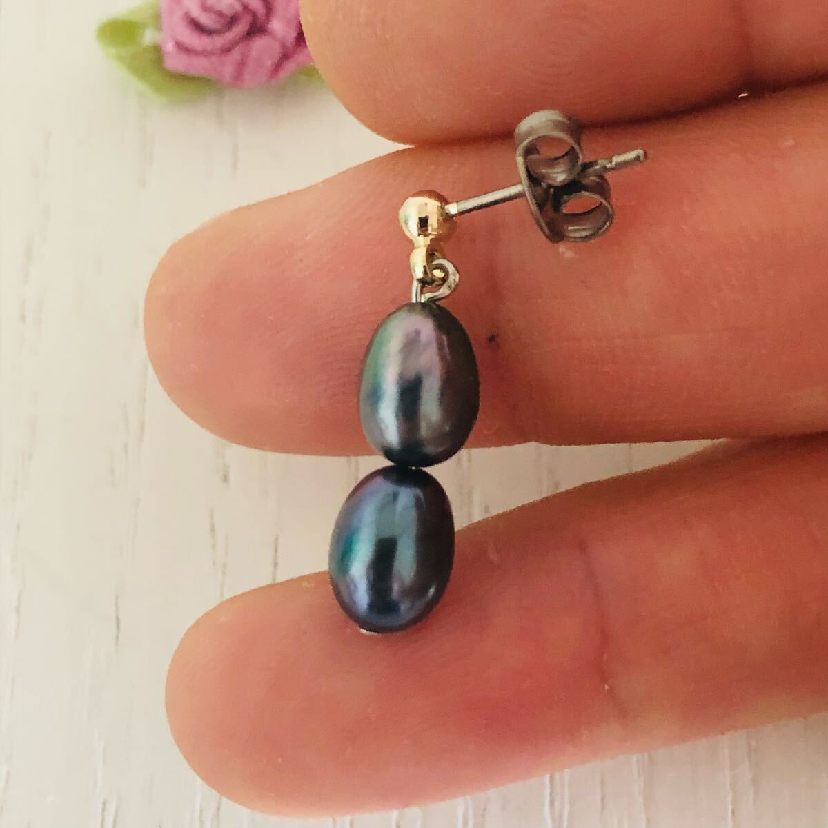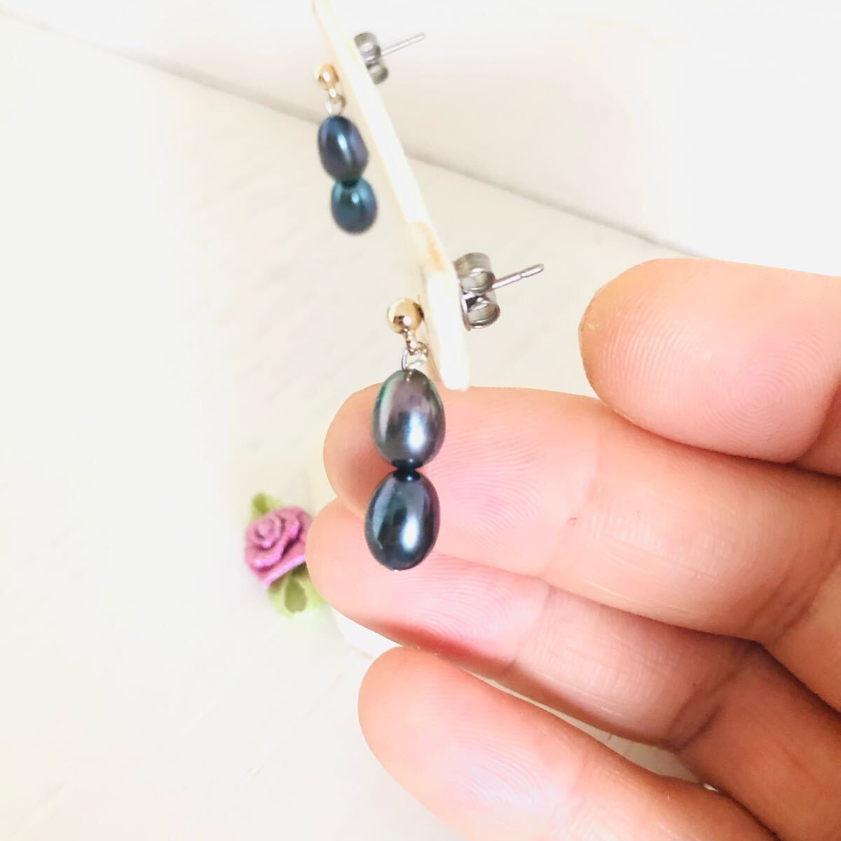 ピーッコク色のエレガント高級淡水パールピアスです。