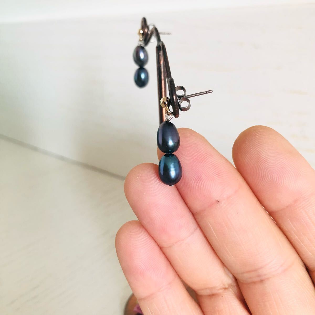 パーツ部分を「チタン」に変更しているこちらのピアスはピアスを付けた時に耳たぶに1番近い所にパールが来るのでとってもオシャレです。