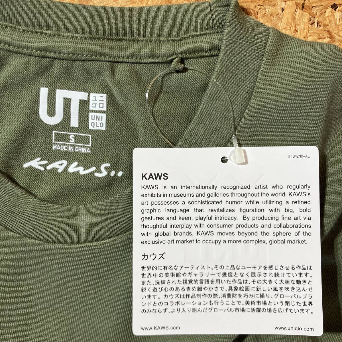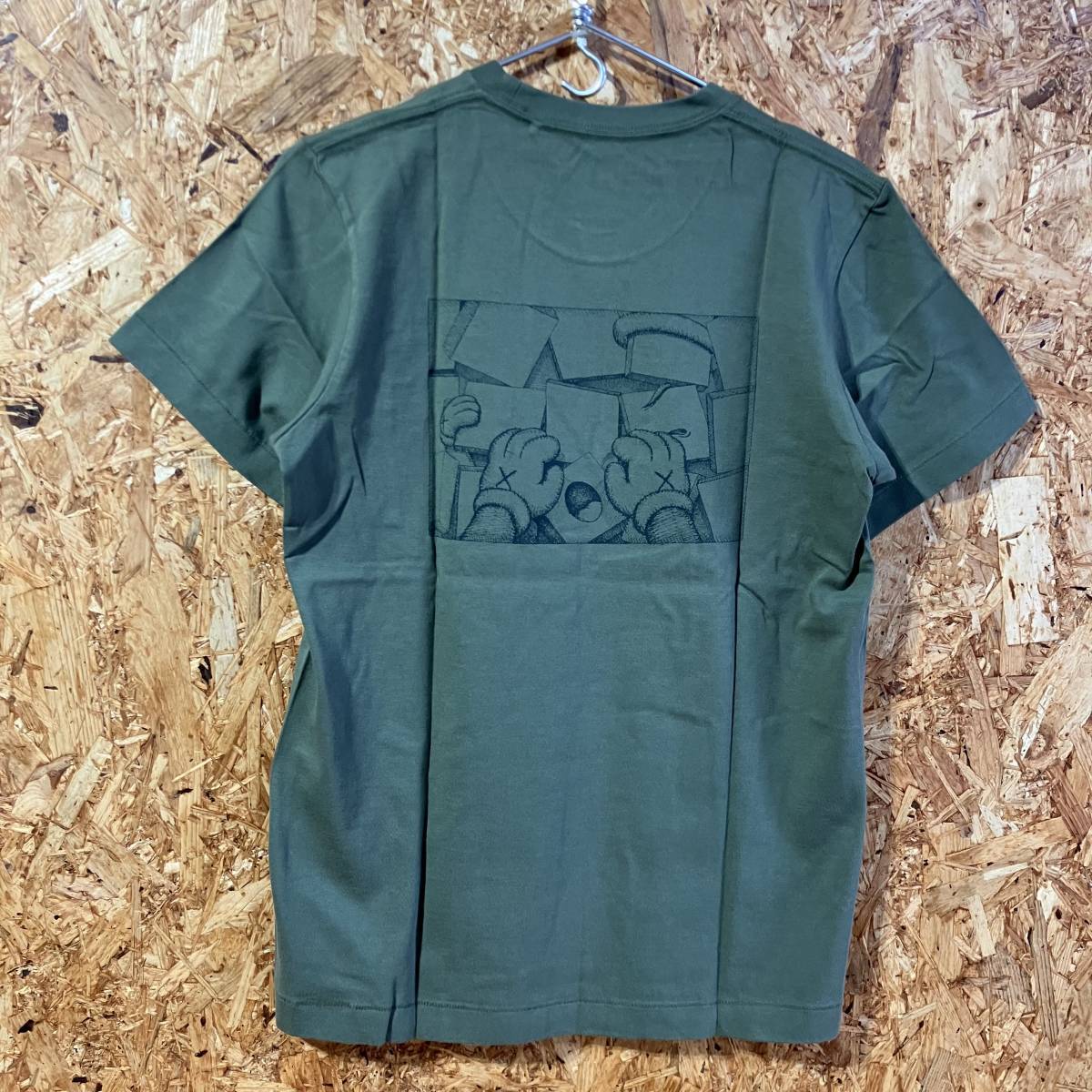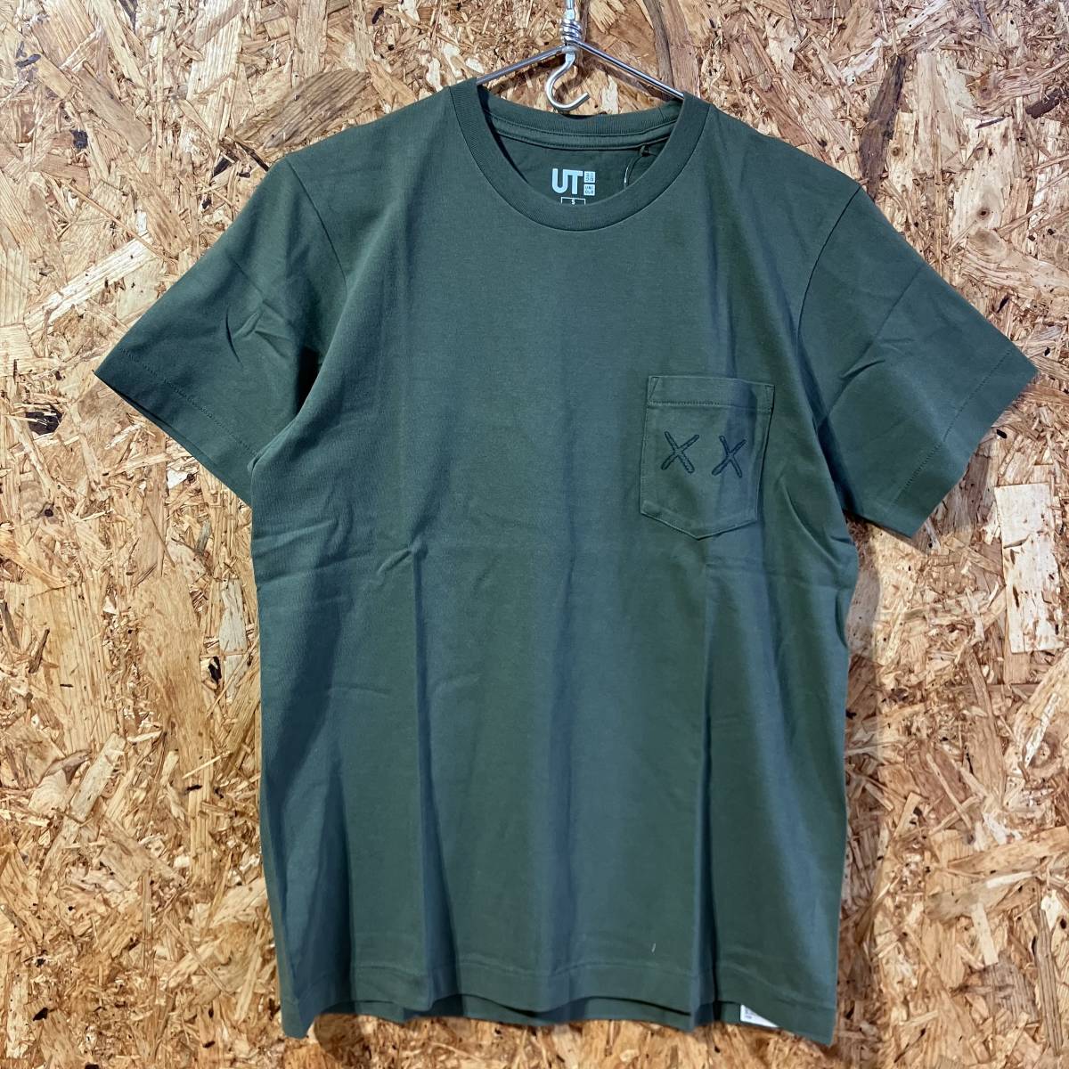 KAWS カウズ 半袖 Tシャツ バックプリント ポケット カーキ S コラボ 別注 限定 UT ユニクロ