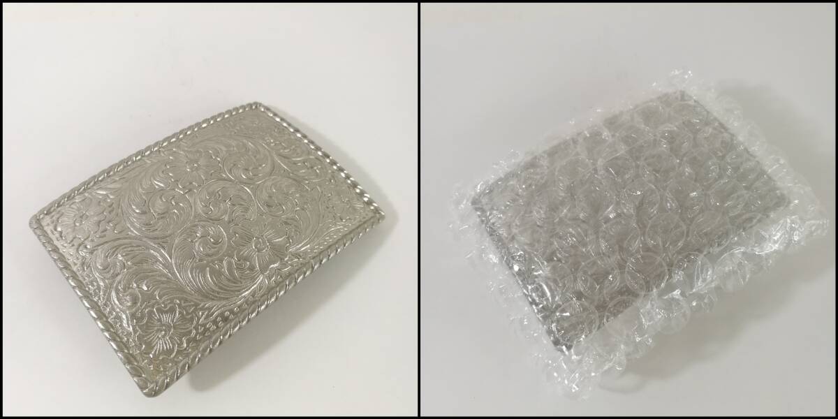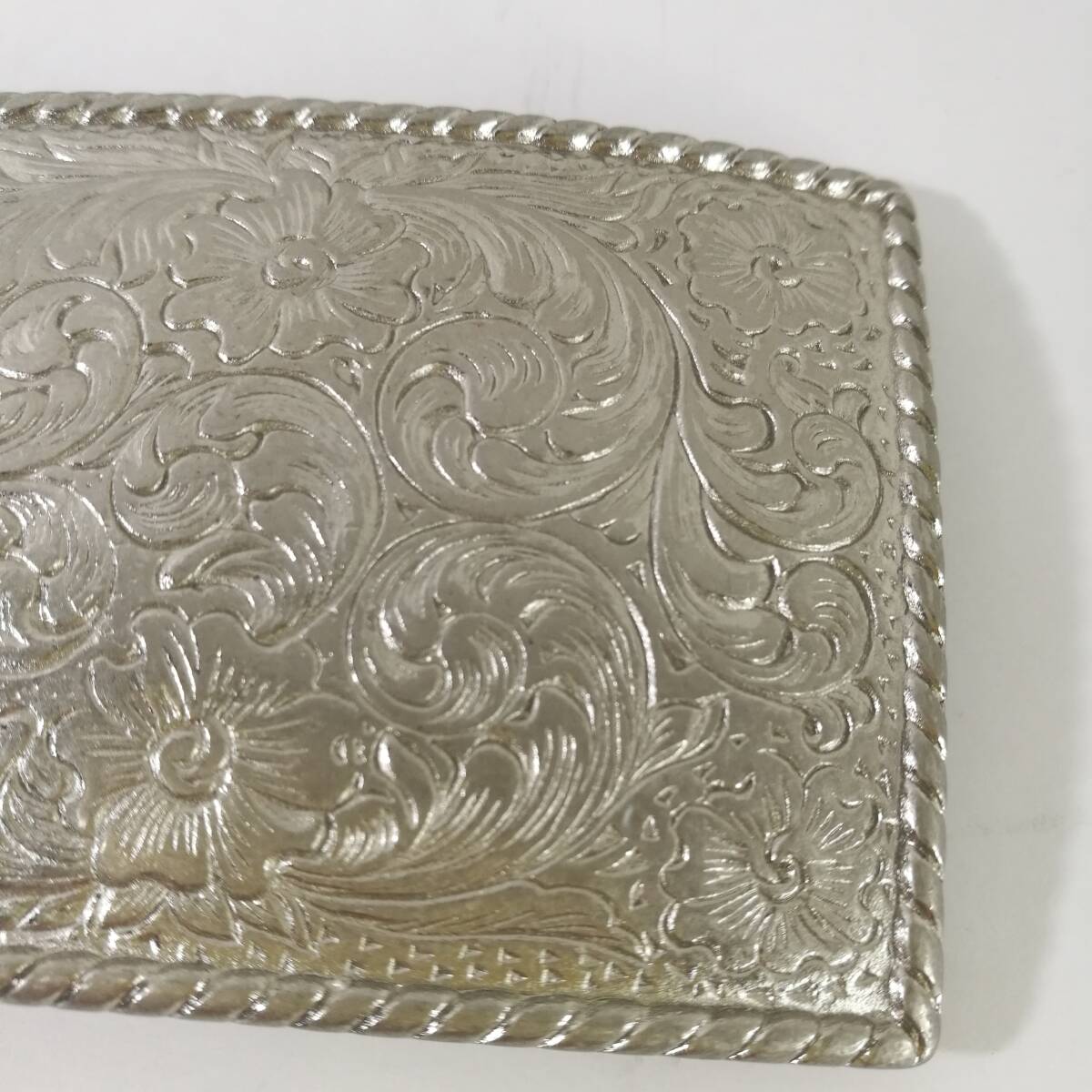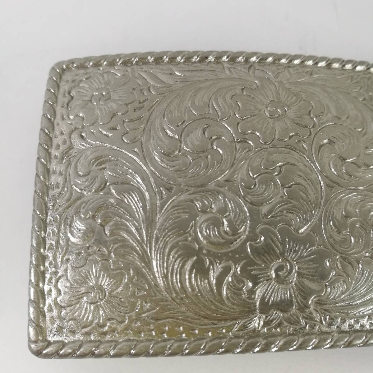 [G1142]古い バックル  /金属製//レトロ/アンティーク/ビンテージ/花/花柄/唐草/ベルト/四角/スクエア