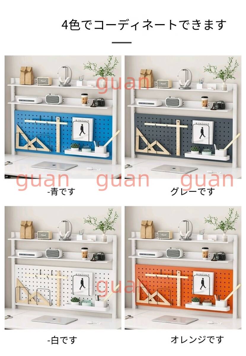 机上ラック 有孔ボード クランプ式ラック 机上台 卓上ラック 本棚 ボード デスクラック 3段 高さ位置調整 デスク上置棚 幅100cm ブルー