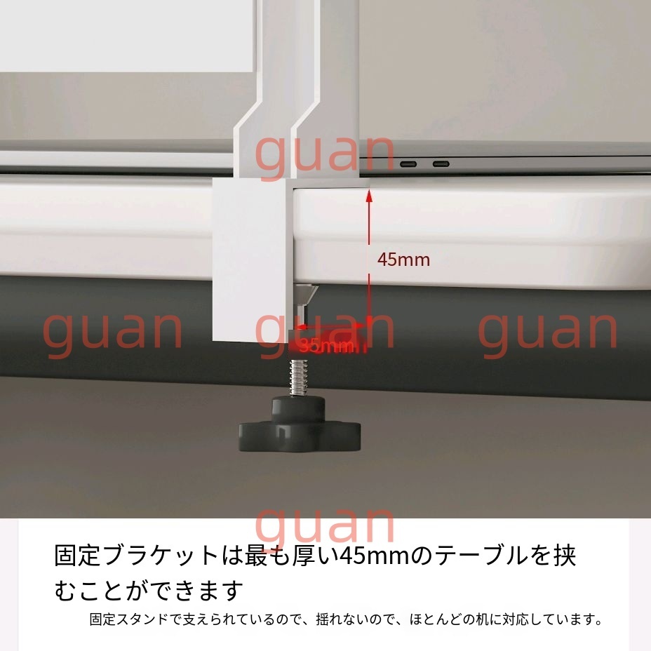 【強固なクランプ】しっかりとしたクランプは、机の端にしっかりと固定され、「天板の厚さ4.5cm以内」安定したサポートを提供します。安心して重いものを置くことができます。収納設計により、ファイルや書籍、文書などのオフィス用品を柔軟に収納でき、さまざまな収納ニーズに対応します。
