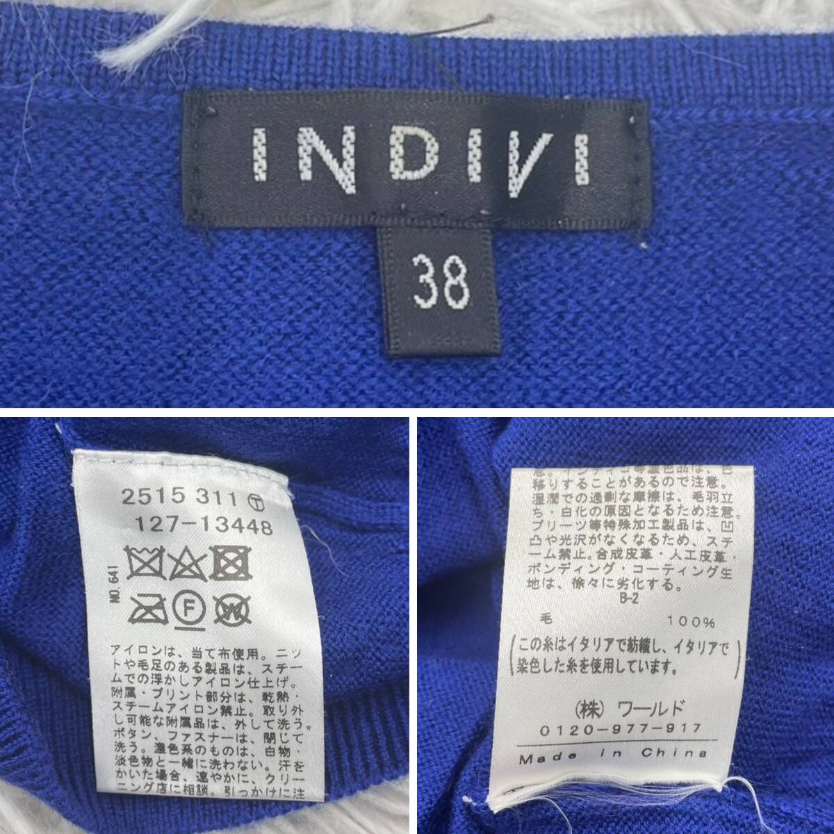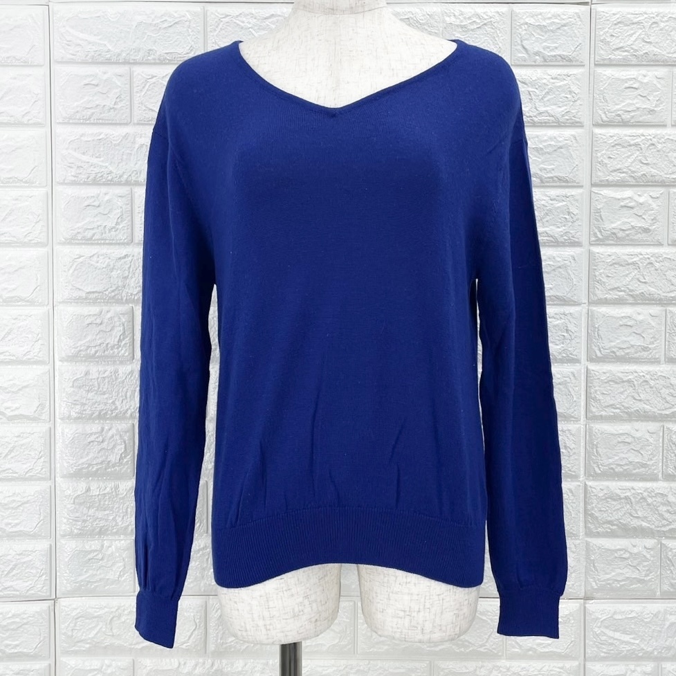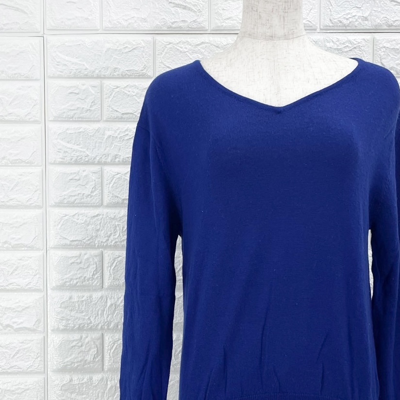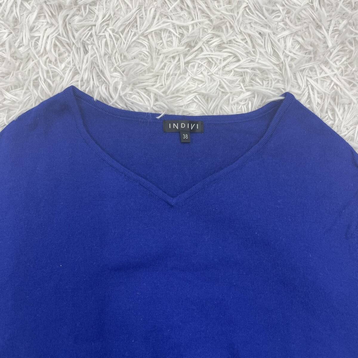 【A3254】INDIVI インディヴィ ニットセーター レディース 長袖 ブルー Vネック スリムフィット 上品 シンプル カジュアル 秋冬 Mサイズ