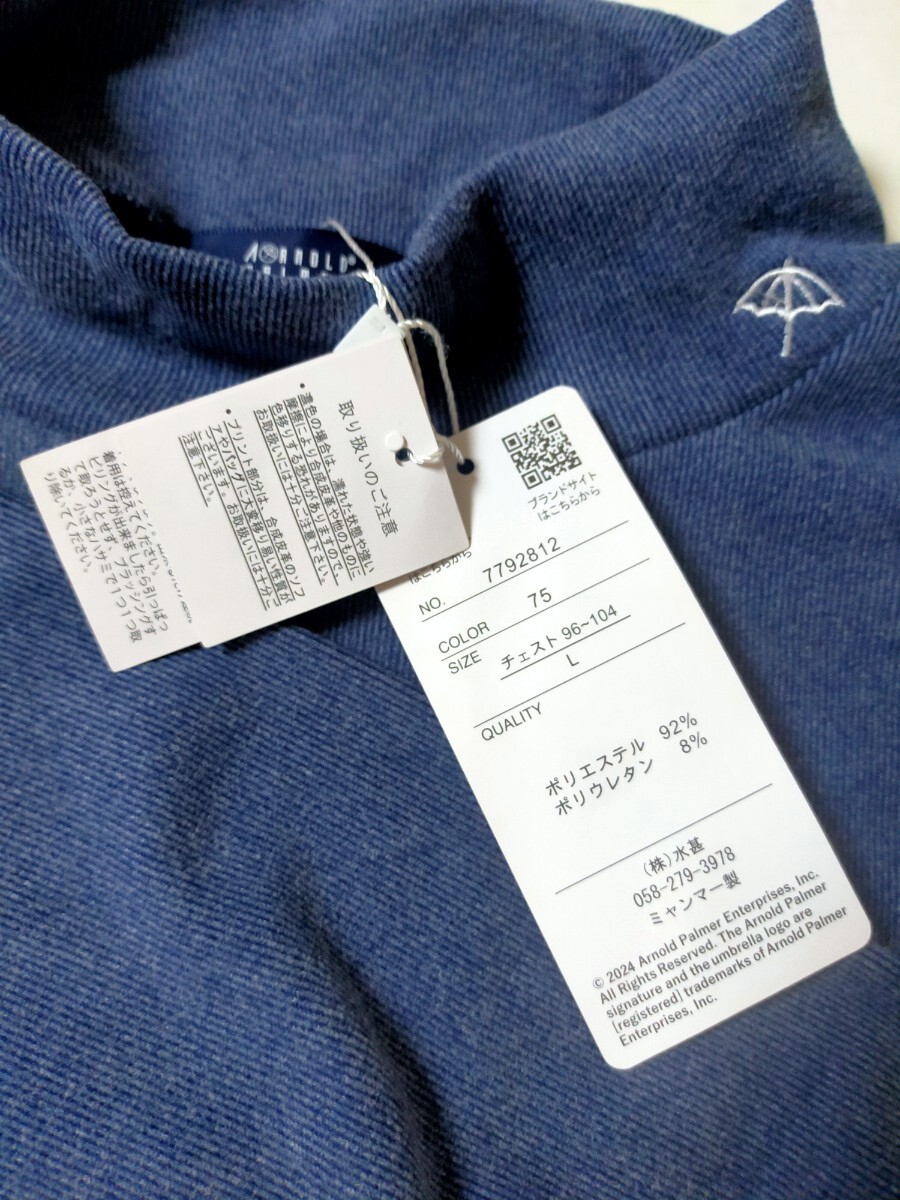 ◆新品・未使用 Lサイズ!送料無料!Arnold Palmer 暖かい素材 ! ハイネック シャツ インナー【グレー】長袖シャツ Tシャツ