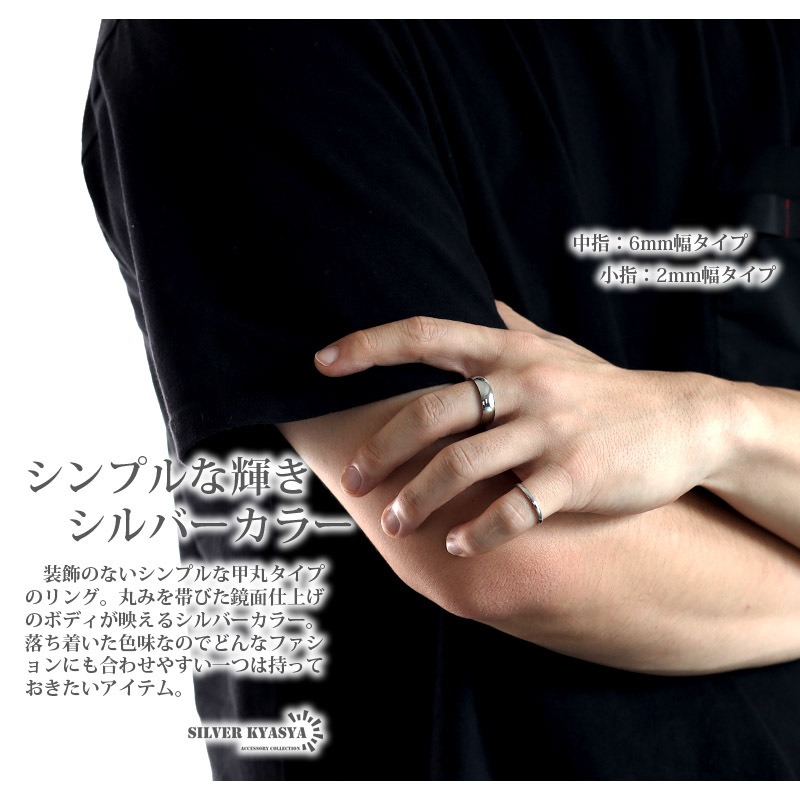 ・装飾のないシンプルな甲丸タイプのリング。丸みを帯びた鏡面仕上げのボディが映えるシルバーカラー。落ち着いた色味でどんなファッションにも合わせやすい一つはもっておきたいアイテム。